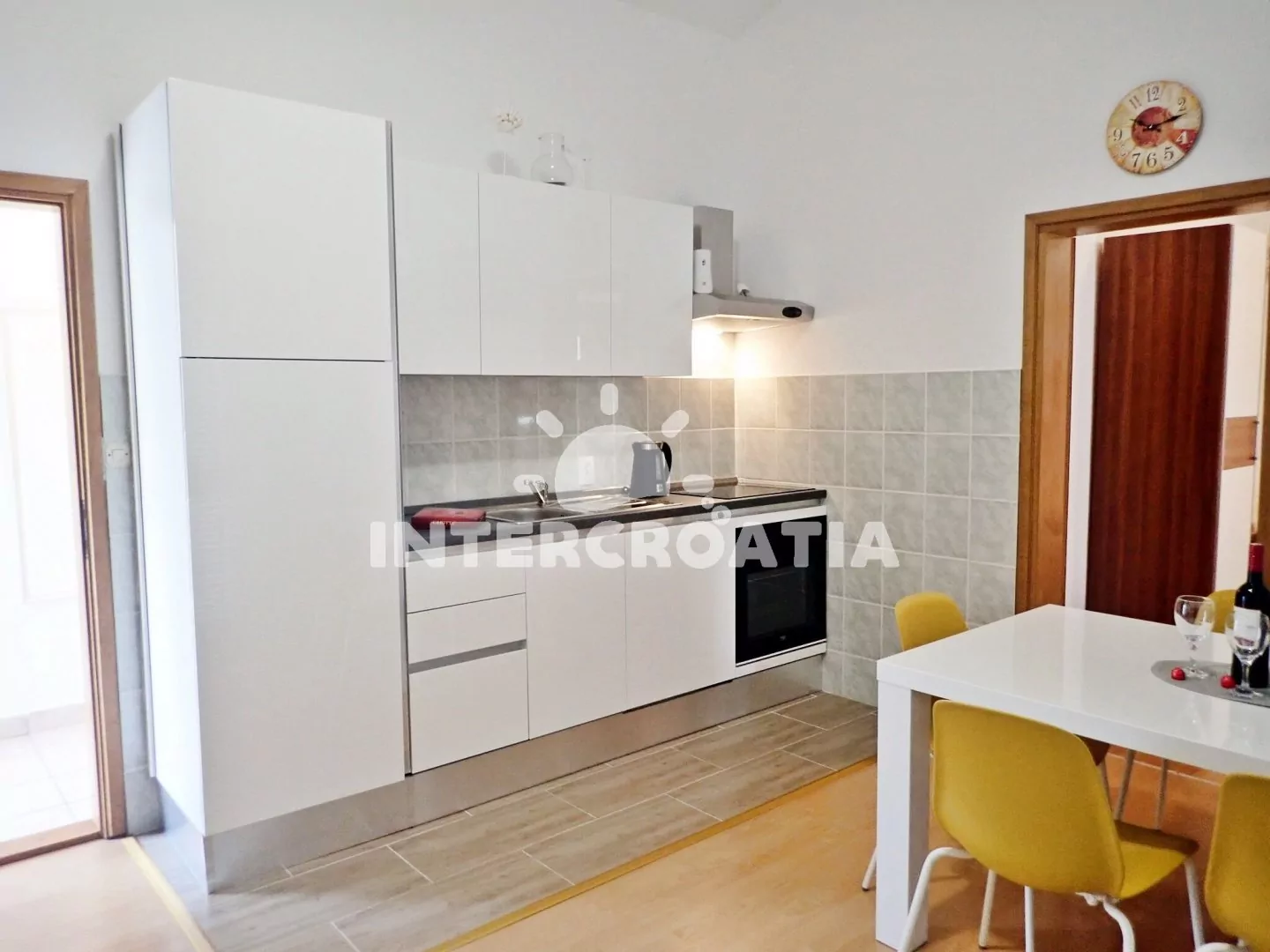 Apartmán (80 m2) s vlastním balkonem a posezením se nachází v 1. patře vily a je vhodný pro až 7 osob. Obývací pokoj je spojený s kuchyní. Kuchyňská linka je vybavena sklokeramickou varnou deskou,…