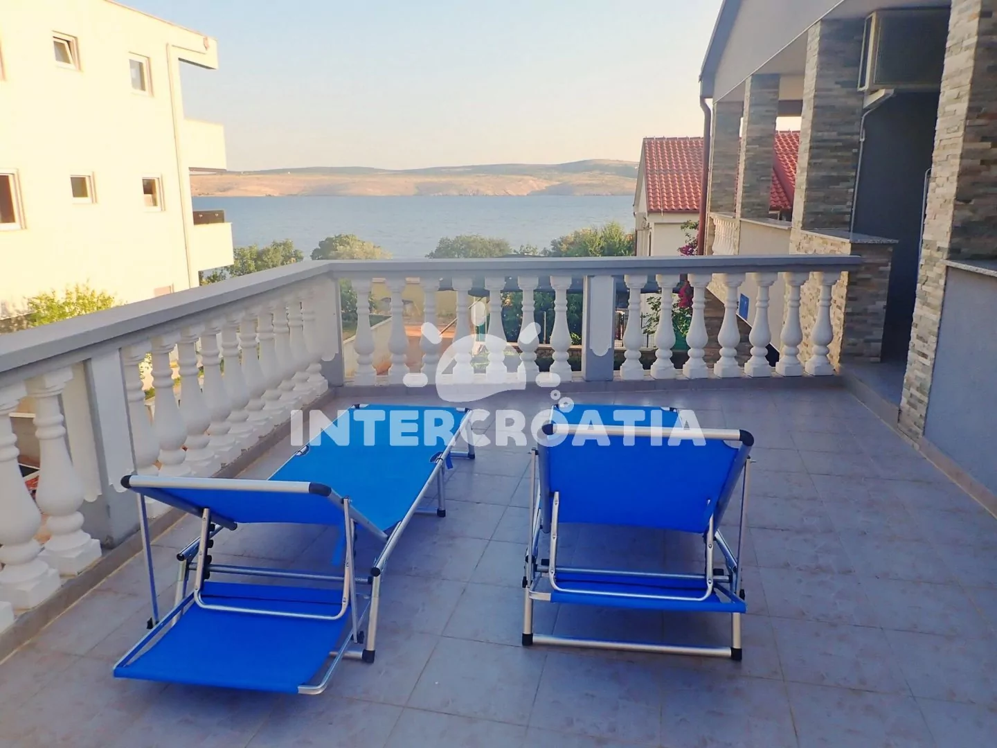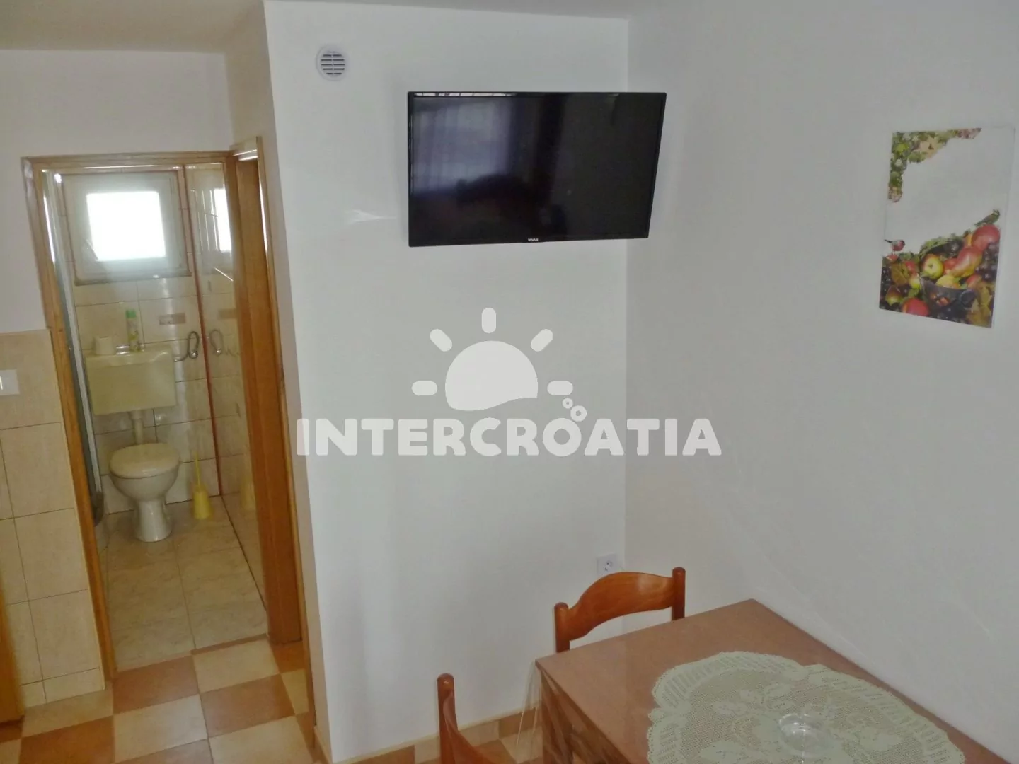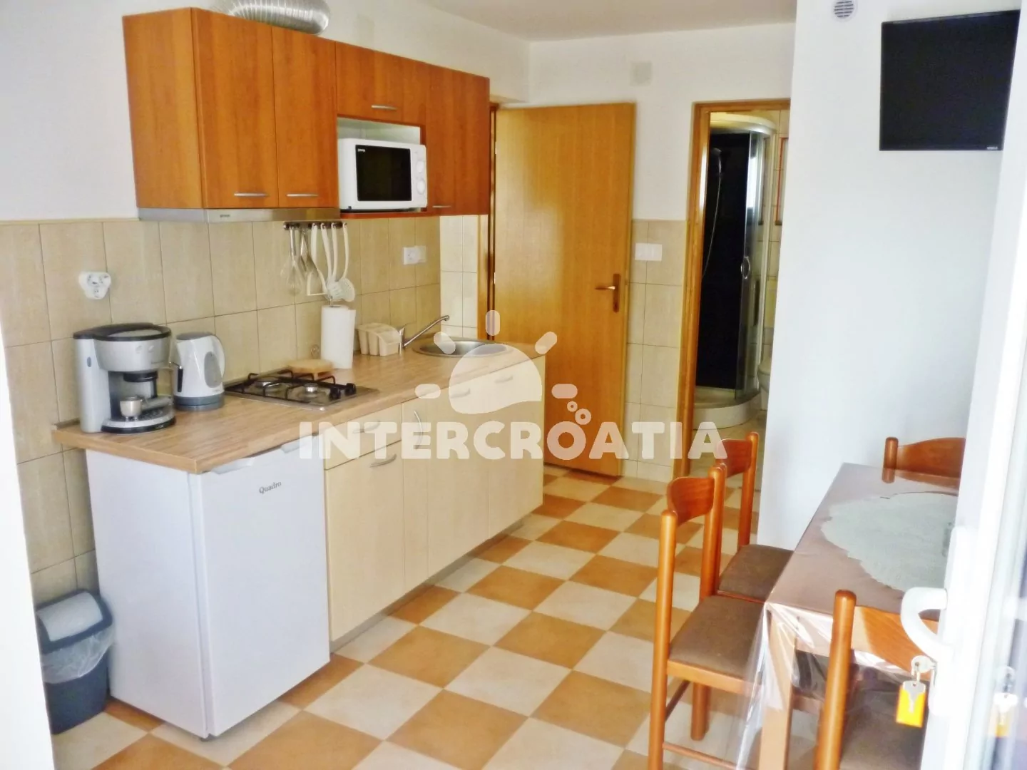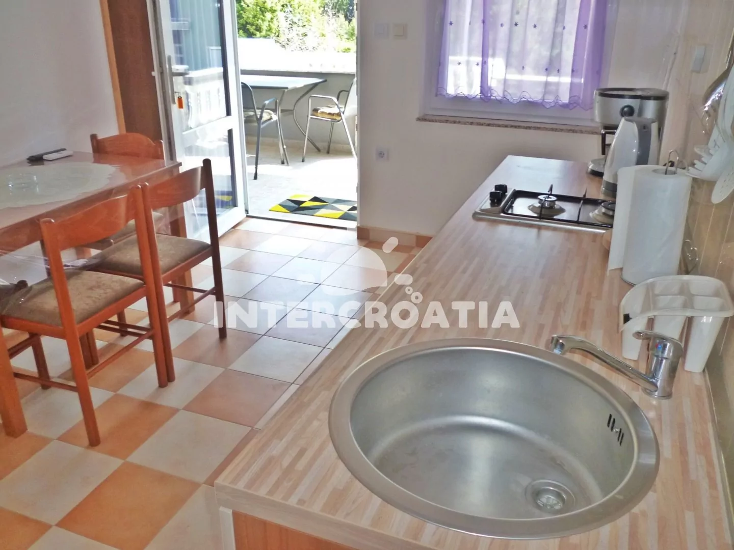 Apartmán (50 m2) s terasou, výhledem na moře a klidnou ulici se nachází v 1. patře domu a je vhodný pro 3 osoby. Obývací pokoj je spojený s kuchyní. Kuchyňská linka je vybavena dvouplotýnkovým vařičem, digestoří, mikrovlnnou troubou, myčkou na nádobí, rychlovarnou konvicí, kávovarem, nádobím a lednicí s mrazákem. Obývací pokoj s jídelním stolem pro 4 osoby, pohovkou, televizí se satelitním programem, klimatizací a vstupem na terasu. První ložnice s dvoulůžkem. Druhá ložnice s jedním jednolůžkem. Koupelna se sprchovým koutem, umyvadlem a wc. Hostům je k dispozici parkování u objektu zdarma.