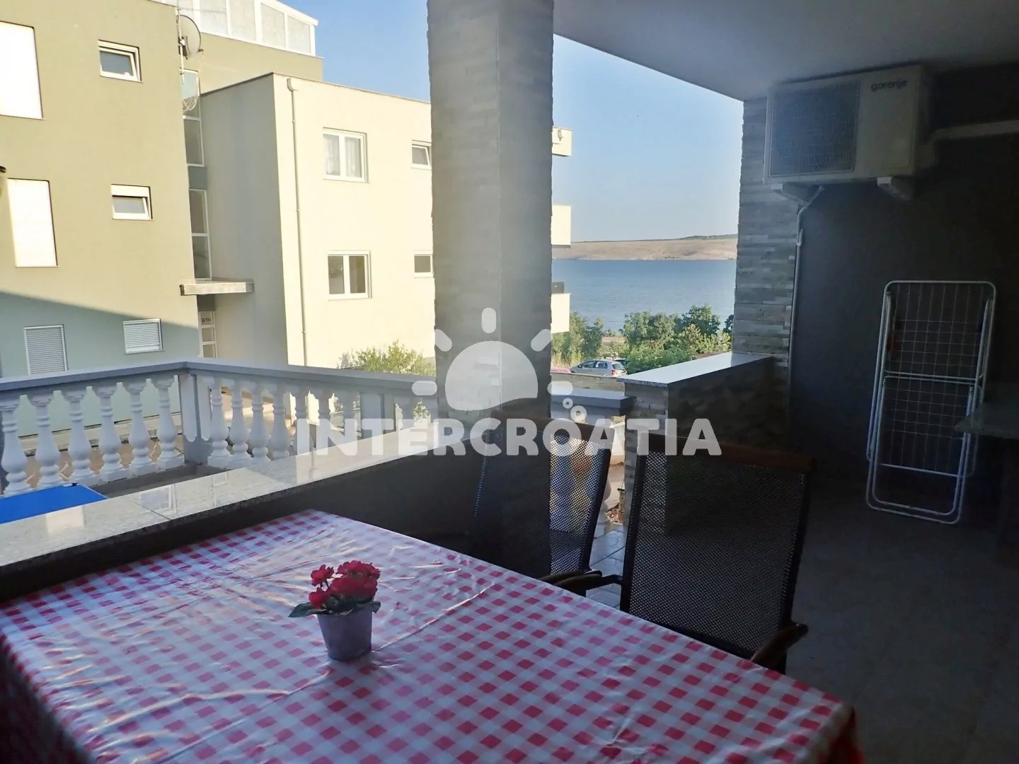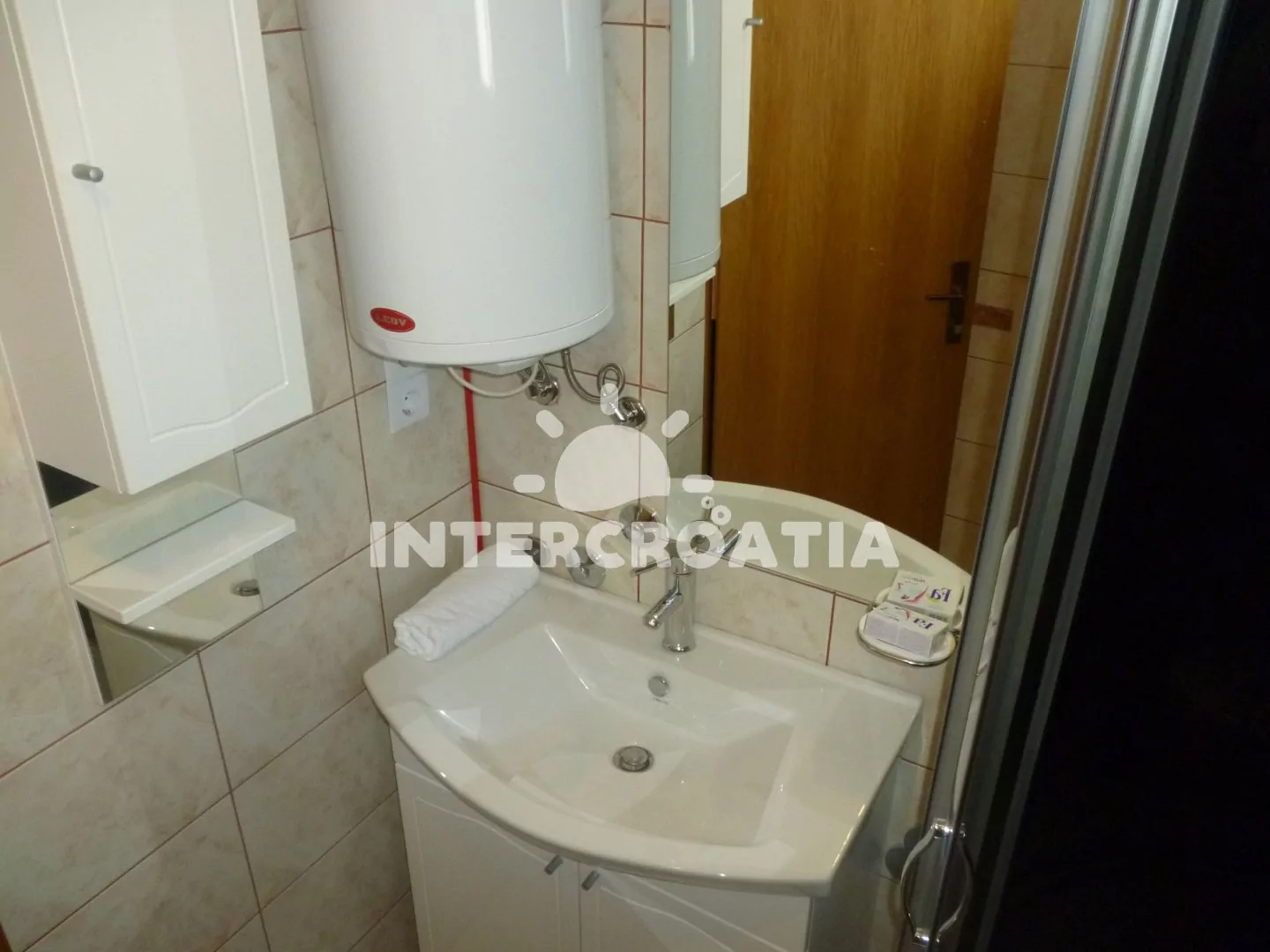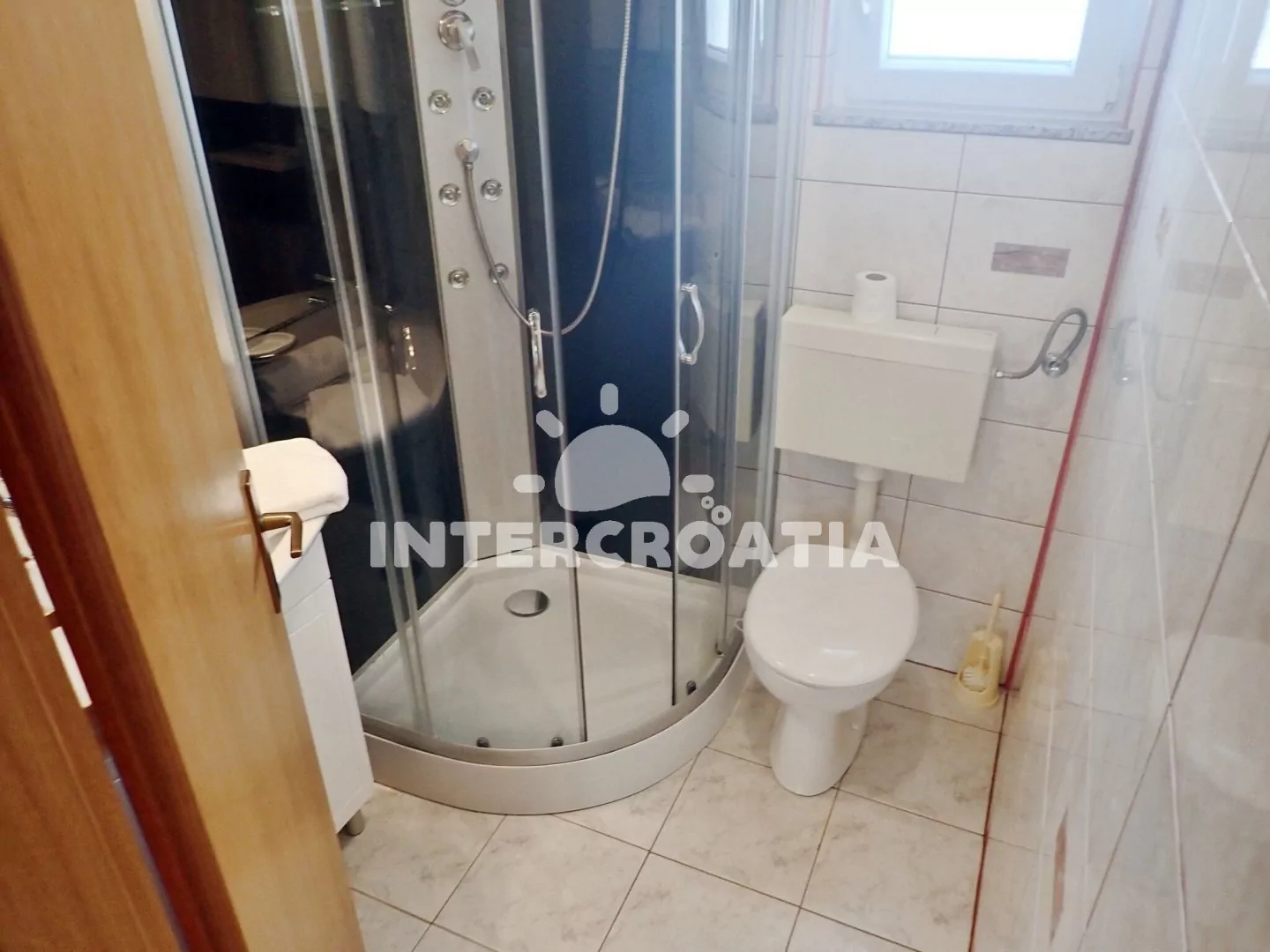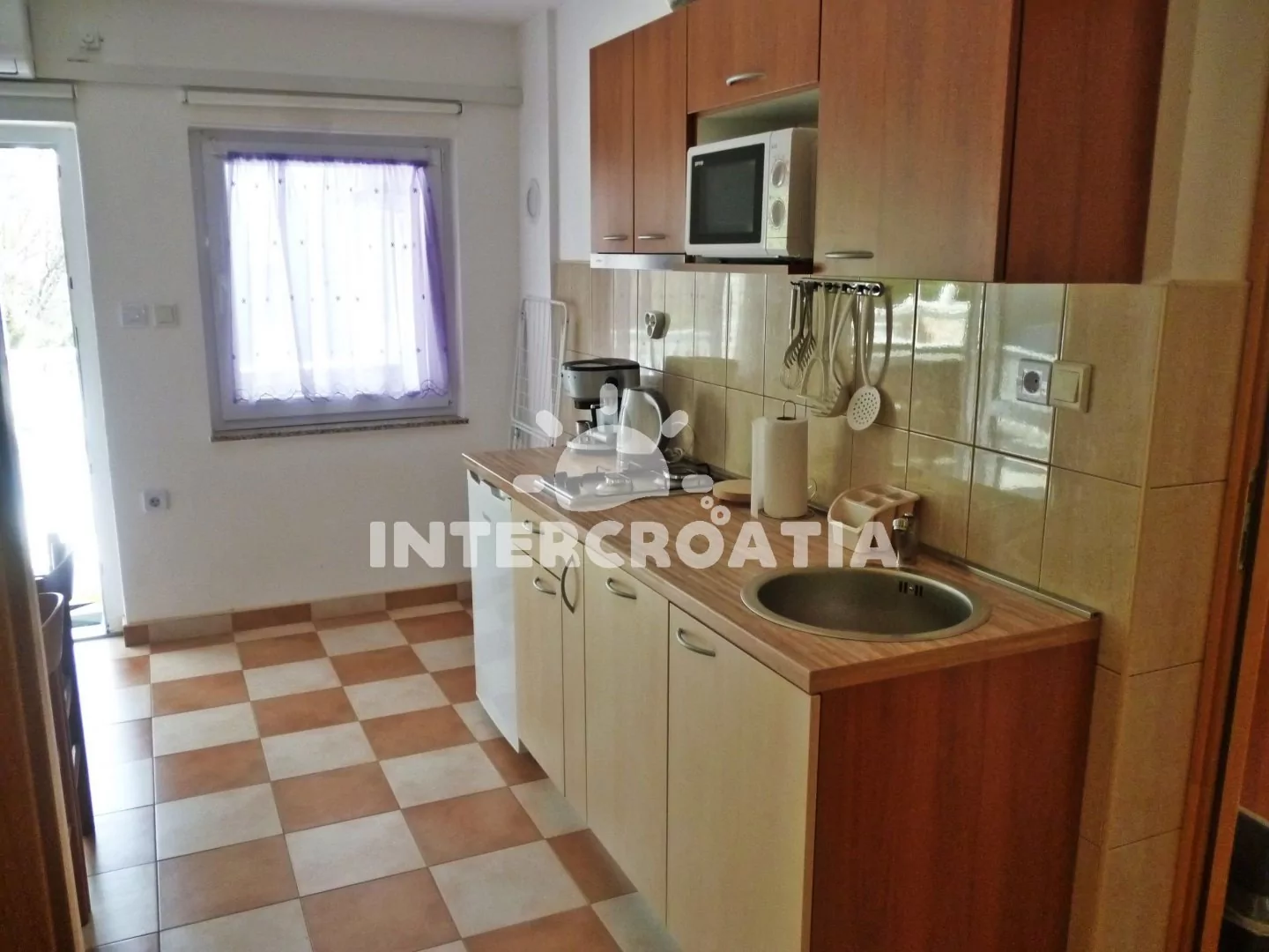 Apartmán (50 m2) s terasou, výhledem na moře a klidnou ulici se nachází v 1. patře domu a je vhodný pro 3 osoby. Obývací pokoj je spojený s kuchyní. Kuchyňská linka je vybavena dvouplotýnkovým vařičem, digestoří, mikrovlnnou troubou, myčkou na nádobí, rychlovarnou konvicí, kávovarem, nádobím a lednicí s mrazákem. Obývací pokoj s jídelním stolem pro 4 osoby, pohovkou, televizí se satelitním programem, klimatizací a vstupem na terasu. První ložnice s dvoulůžkem. Druhá ložnice s jedním jednolůžkem. Koupelna se sprchovým koutem, umyvadlem a wc. Hostům je k dispozici parkování u objektu zdarma.