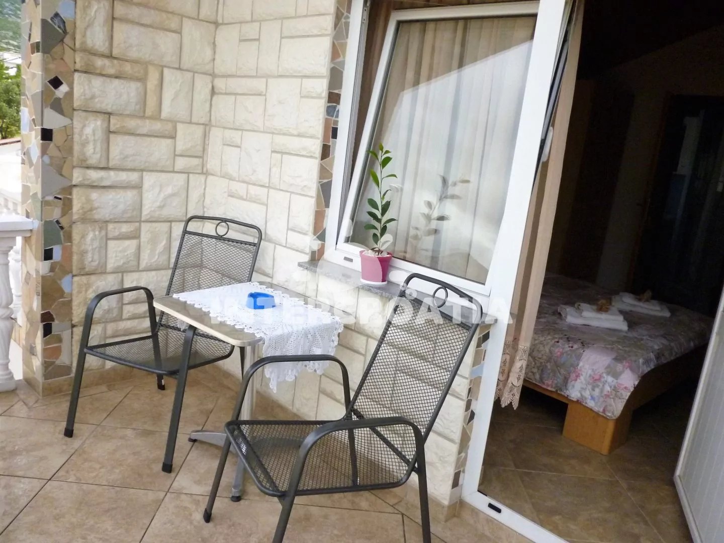 Apartmán (25 m2) typu studio s balkonem a venkovním posezením se nachází v 1. patře domu. Obývací místnost je spojena s kuchyní. Kuchyňská linka je vybavena dvouplotýnkovým vařičem, rychlovarnou konvicí, kávovarem, nádobím a lednicí s mrazákem. Obývací místnost s jídelním stolem, dvoulůžkem, televizí se satelitním programem, klimatizací a vstupem na balkon. Koupelna se sprchovým koutem, umyvadlem a wc. Hostům je k dispozici parkování u objektu zdarma.