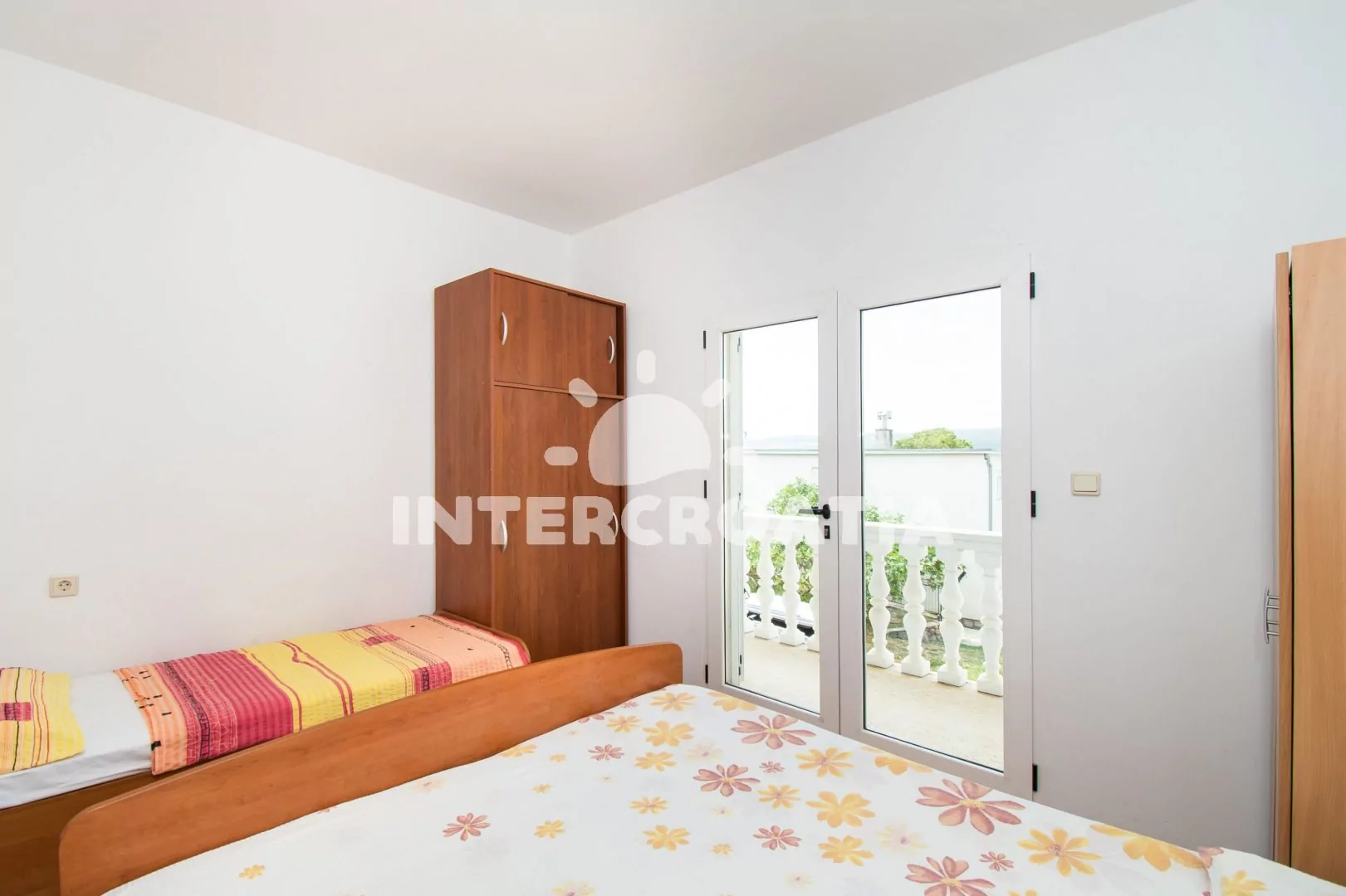 Apartmán (25 m2) s terasou, posezením a výhledem na moře se nachází v 1. patře domu. Apartmán má 1 ložnici a je vhodný pro až 3 osoby. Obývací pokoj je spojený s kuchyní. Kuchyňská linka je vybavena dvouplotýnkovým vařičem, rychlovarnou konvicí, nádobím a lednicí s mrazákem. Obývací pokoj s jídelním stolem, pohovkou, televizí se satelitním programem, klimatizací a vstupem na terasu. Ložnice s dvoulůžkem, jedním jednolůžkem a vstupem na balkon. Koupelna se sprchovým koutem, umyvadlem a wc. Hostům je k dispozici parkování u objektu zdarma.