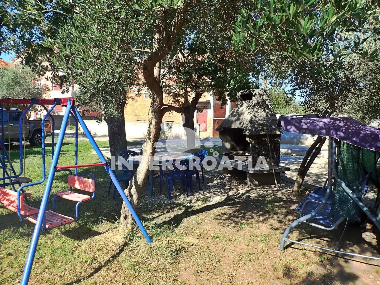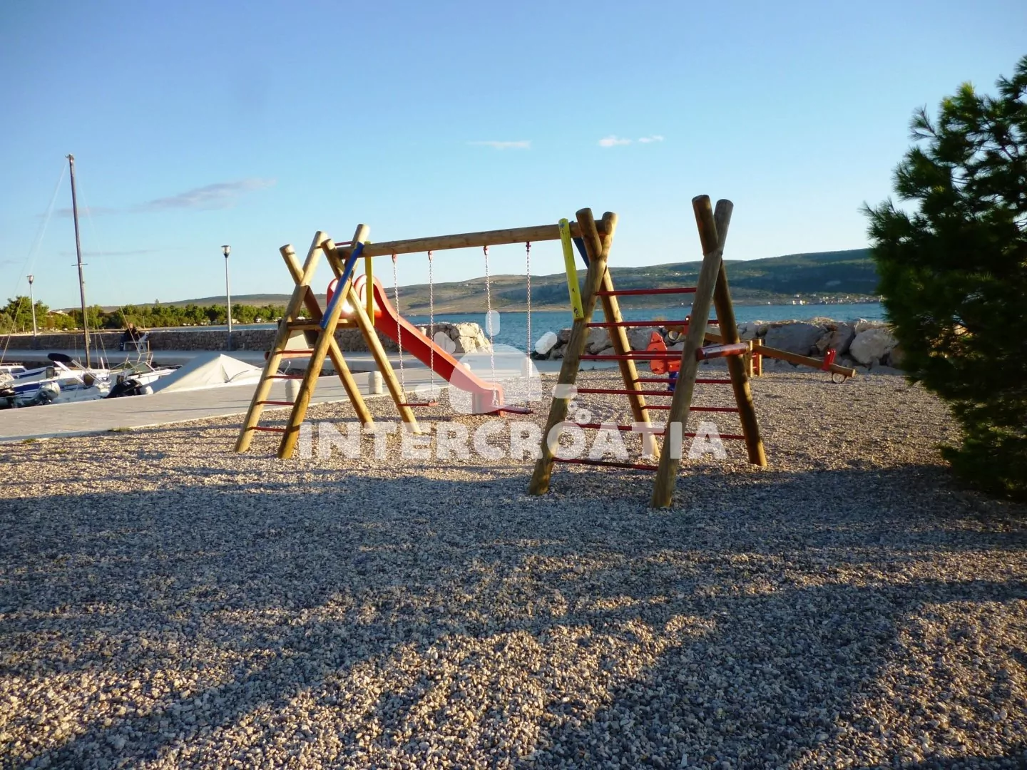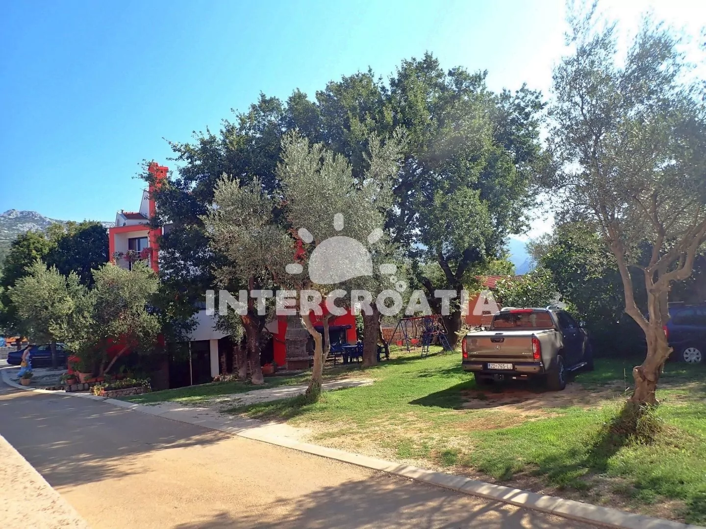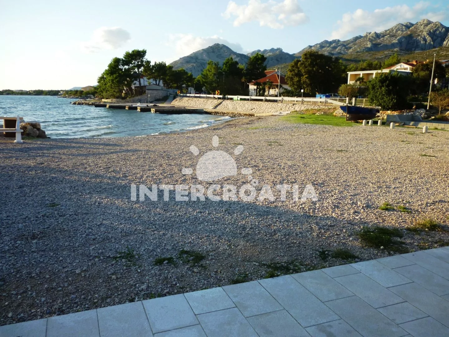 Vzdálenosti: Moře a oblázková pláž 100 m, restaurace a bar 100 m, obchod s potravinami, ambulance, centrum a veřejná doprava 500 m, diskotéka 800 m, tenisové kurty 900 m, půjčovna cyklistických kol, čerpací stanice, lékárna a směnárna 2,5 km, pošta 3 km, půjčovna motorových člunů 3,3 km, park Plitvice 2 km, muzeum, banka a potápění 42 km, trajekt (Zadar) 42 km, letiště (Zadar) 25 km.