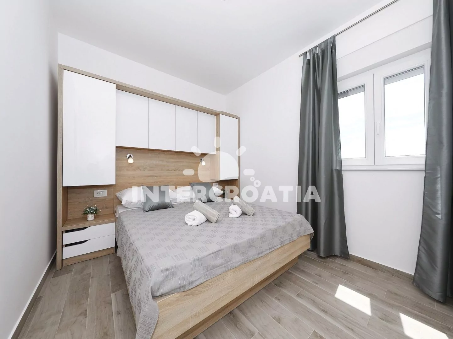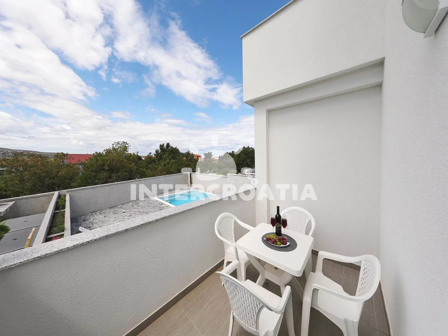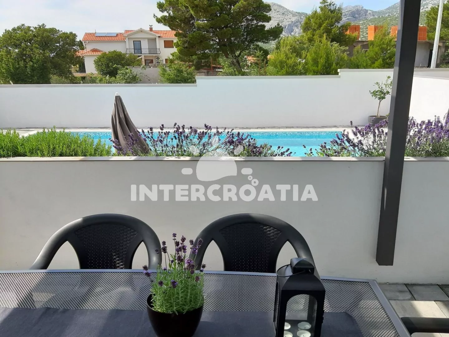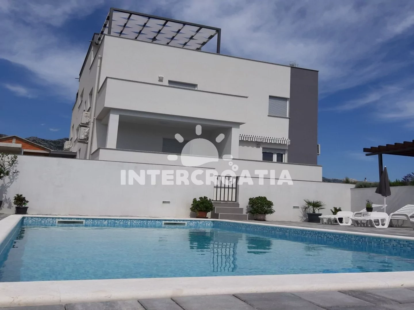 Moderně vystavěná apartmánová vila s venkovním bazénem, lehátky a výhledem na moře. Vila disponuje vlastním pozemkem s terasou, posezením a grilem. Parkovací místa u objektu.