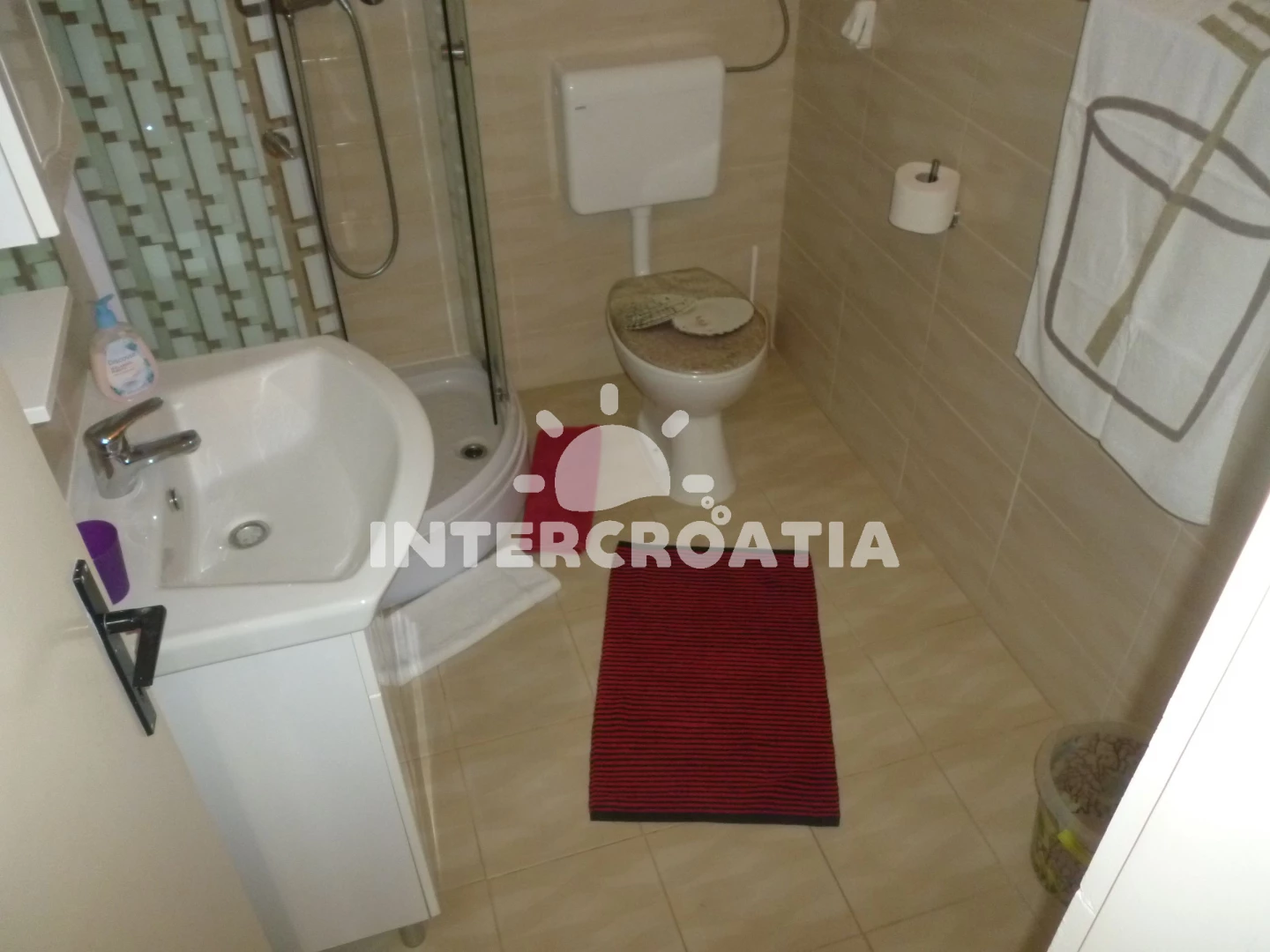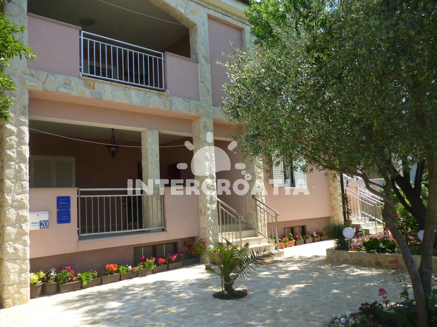 Vzdálenosti: Moře 50 m, pláž 50 m (oblázková a betonové desky), restaurace 100 m, bar 100 m, veřejná doprava 200 m, supermarket 300 m, ambulance 300 m, centrum 300 m, marina 500 m, park Plitvice 1,5 km, tenisové kurty 2 km, lékárna 3 km, čerpací stanice 3,5 km, půjčovna kol 3,5 km, banka 3,5 km, směnárna 3,5 km, pošta 4,5 km, diskotéka 17 km, letiště (Zadar) 30 km, muzeum 40 km, potápění 40 km, trajekt (Zadar) 40 km,