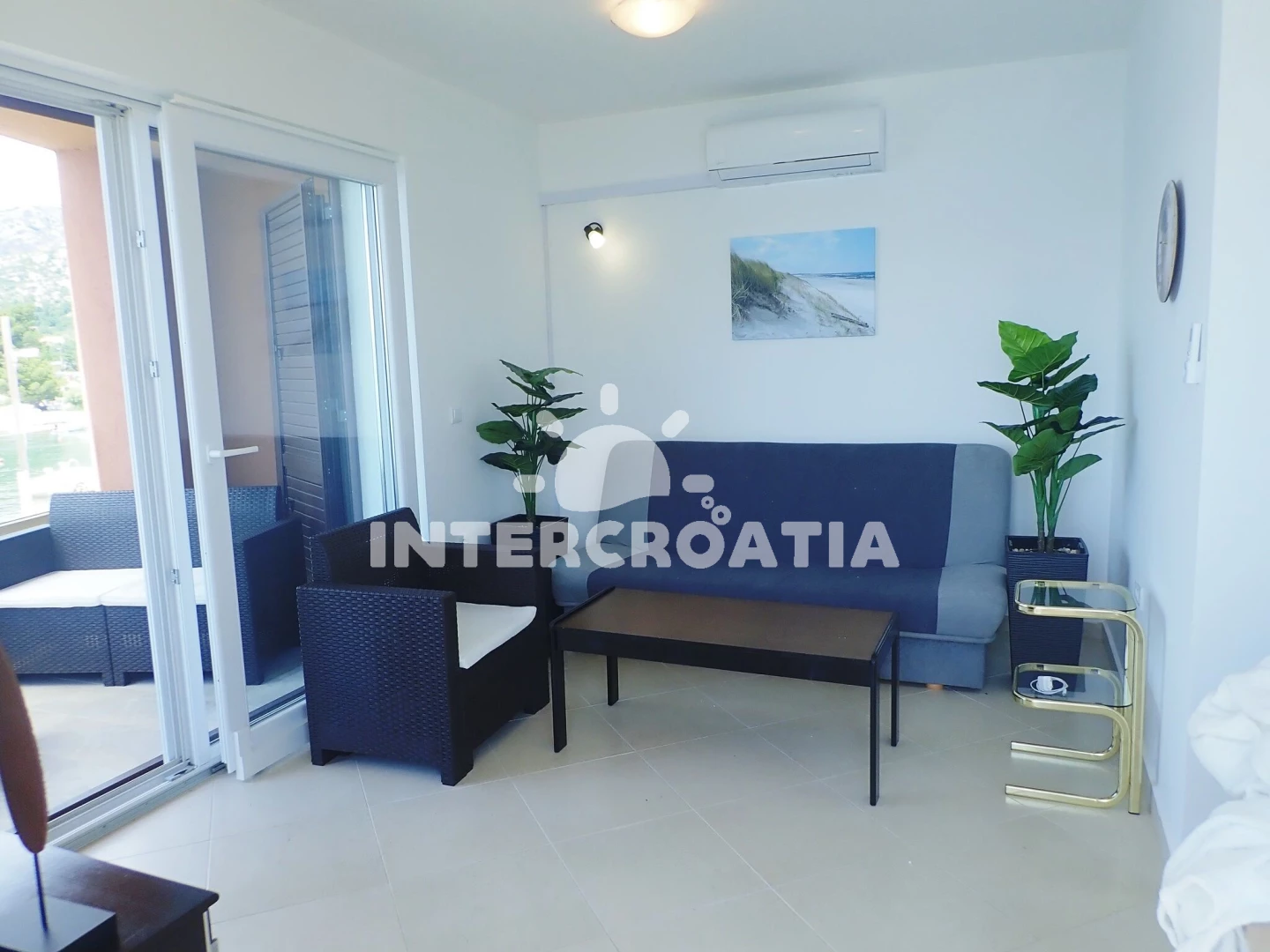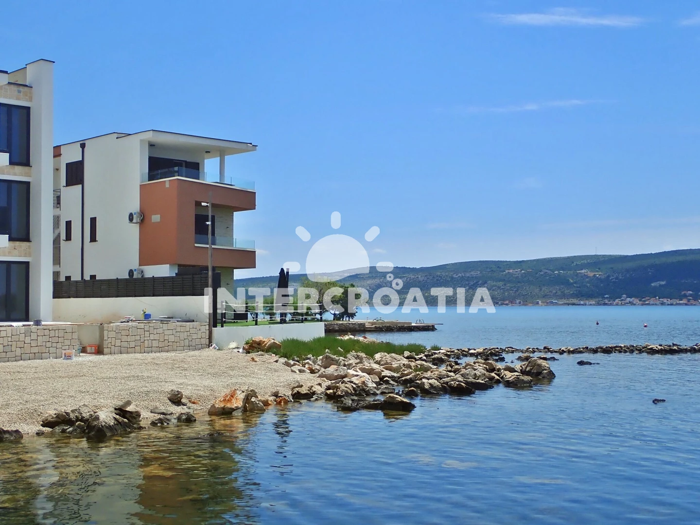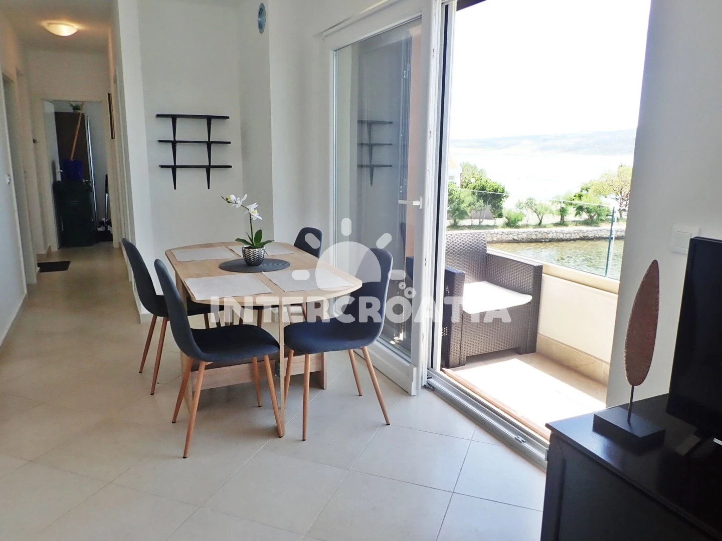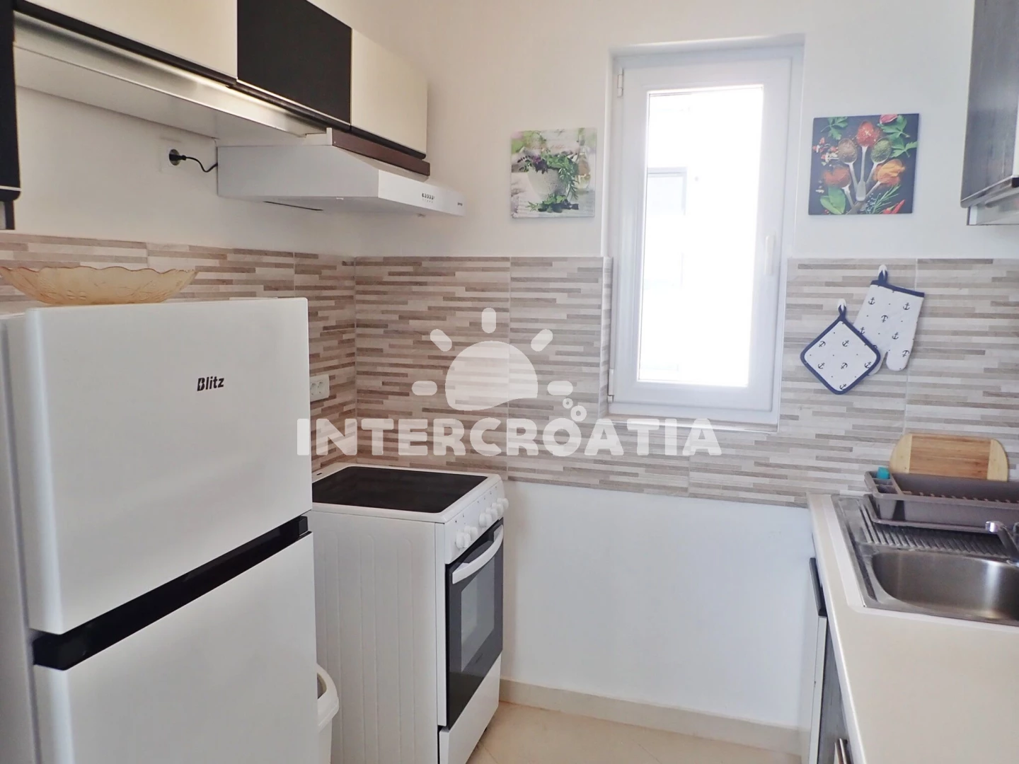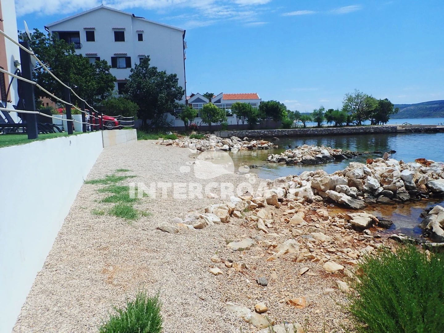 Vzdálenosti: Moře 5 m, pláž 5 m (oblázková a větší kamení), restaurace 50 m, bar 800 m, supermarket 800 m, centrum 800 m, ambulance 800 m, veřejná doprava 800 m, tenisové kurty 1 km, čerpací stanice 2 km, lékárna 2 km, park Plitvice 2 km, pošta 3 km, půjčovna motorových člunů 3,5 km, diskotéka 20 km, letiště (Zadar) 30 km, potápění 42 km, trajekt (Zadar) 42 km, muzeum 42 km, banka 42 km,