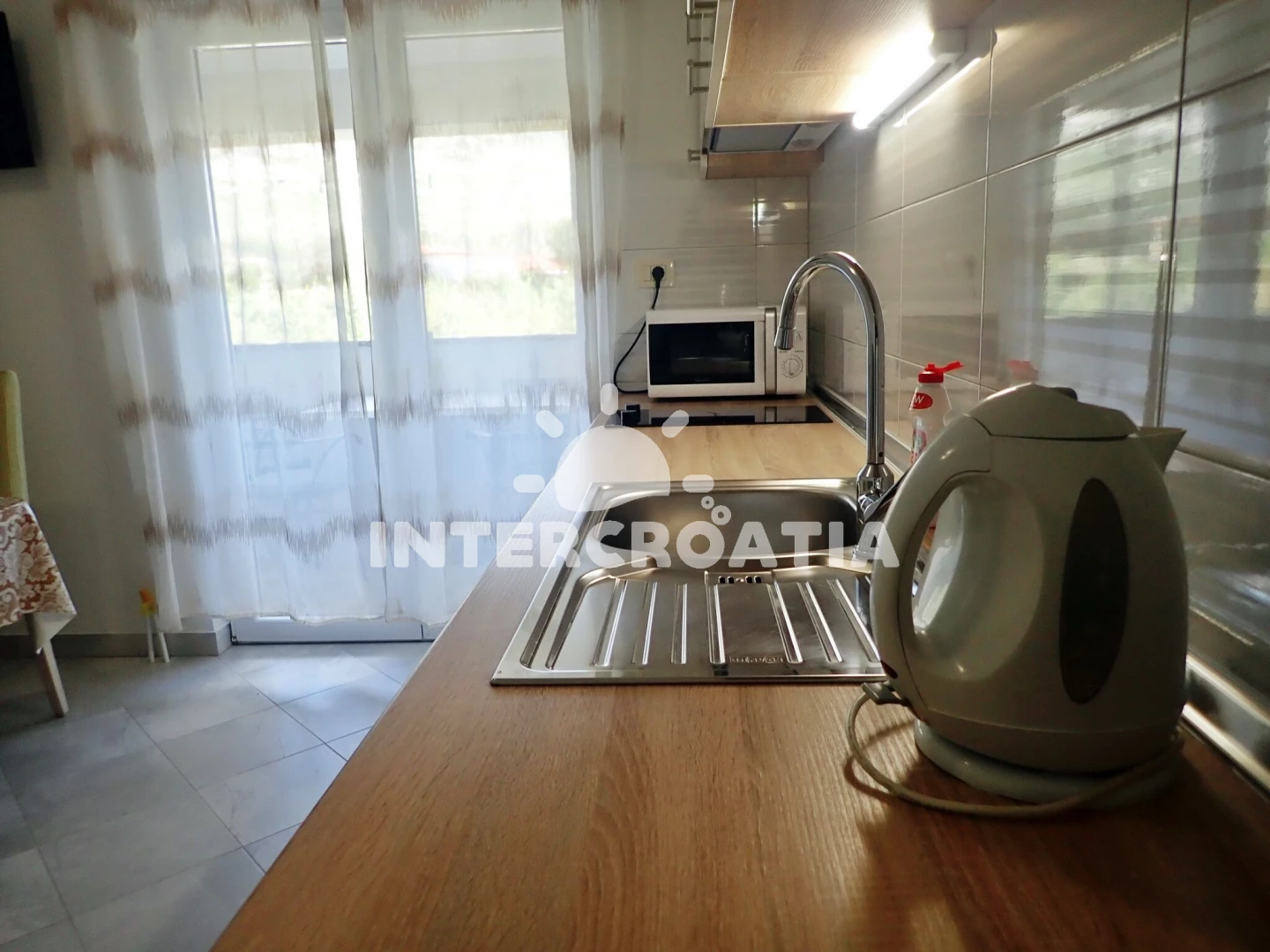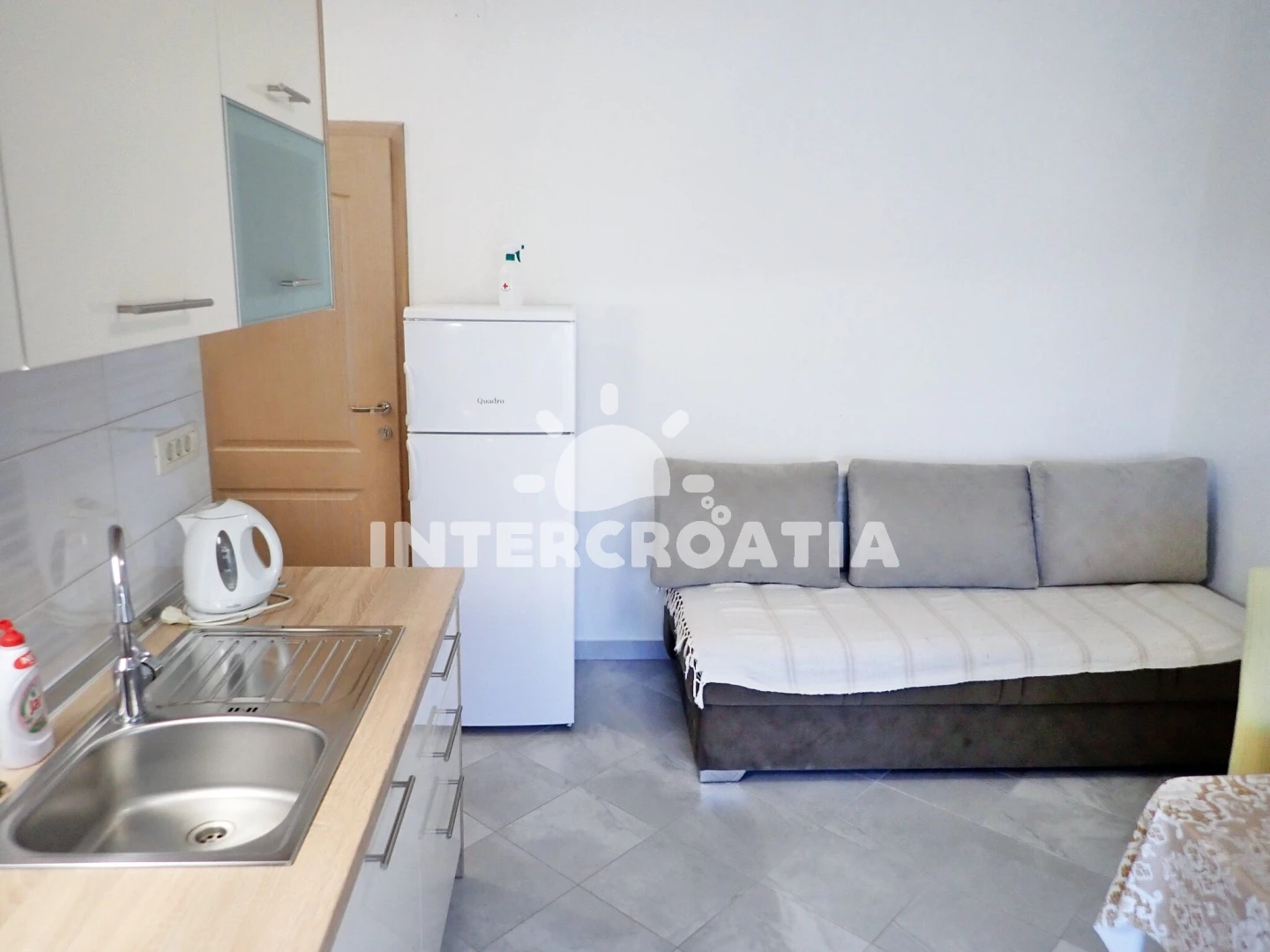 Vzdálenosti: Moře 700 m, pláž 700 m (skalnatá a oblázková), veřejná doprava 300 m, restaurace 700 m, park Plitvice 700 m, supermarket 700 m, centrum 1 km, bar 1 km, ambulance 1 km, diskotéka 3 km, tenisové kurty 3 km, směnárna 4,5 km, lékárna 4,5 km, půjčovna kol 4,5 km, čerpací stanice 4,5 km, pošta 5 km, letiště (Zadar) 30 km, muzeum 42 km, banka 42 km, potápění 42 km, trajekt (Zadar) 42 km,
