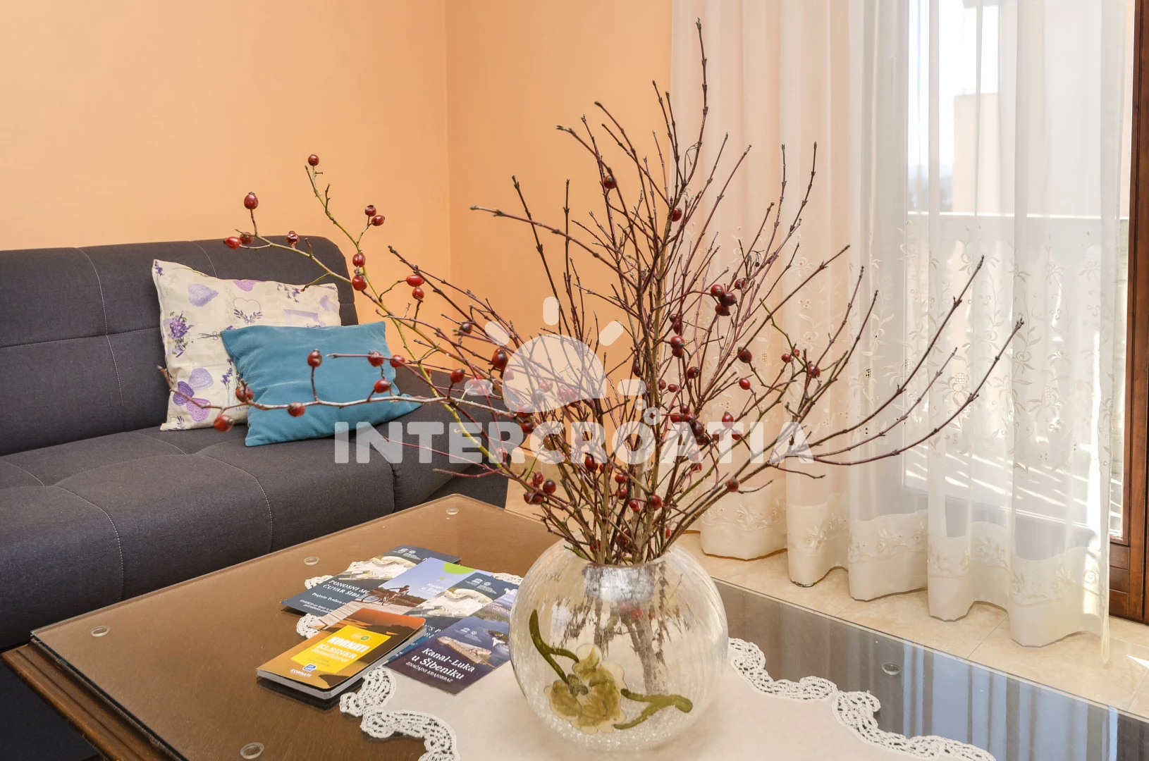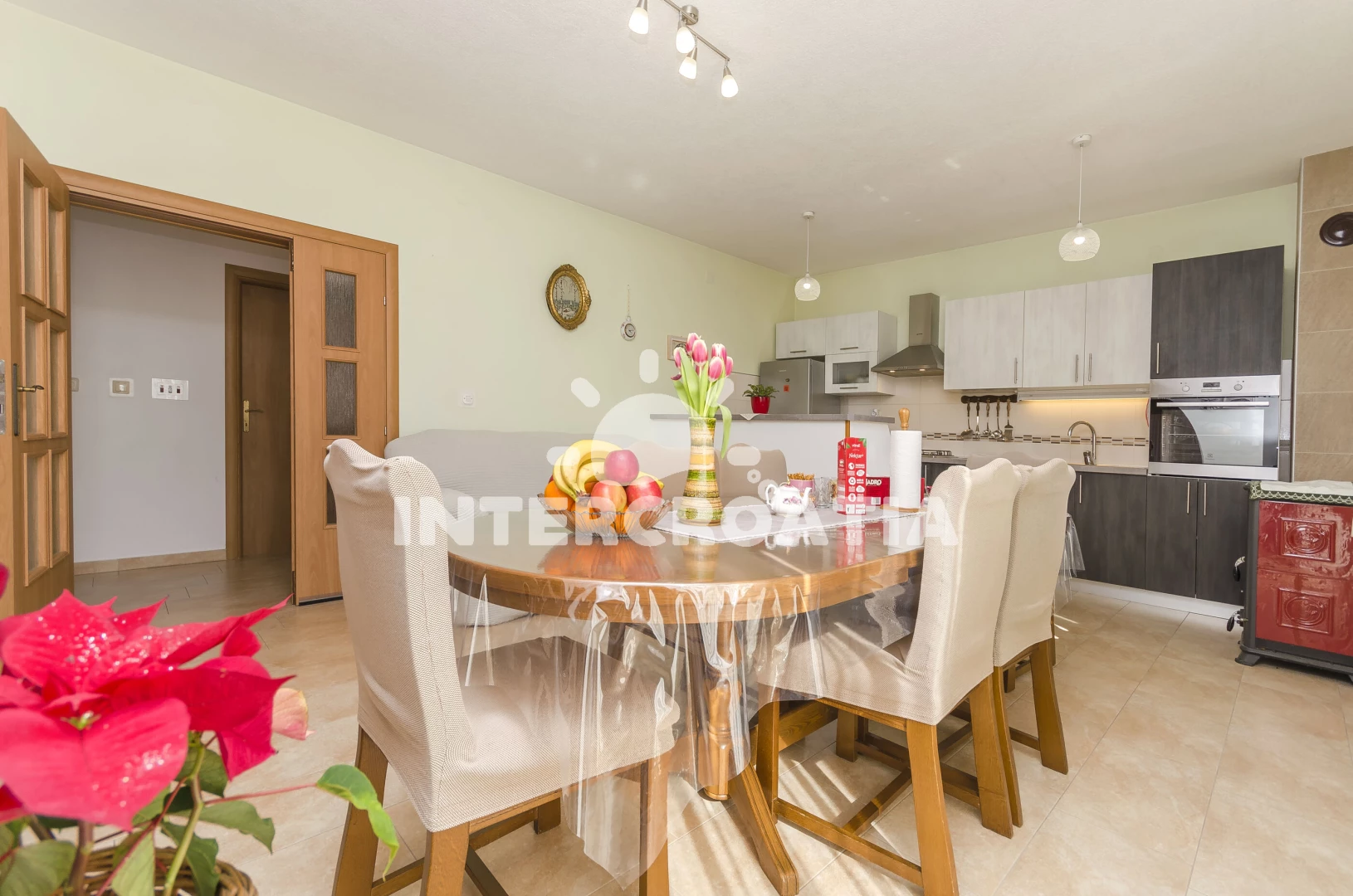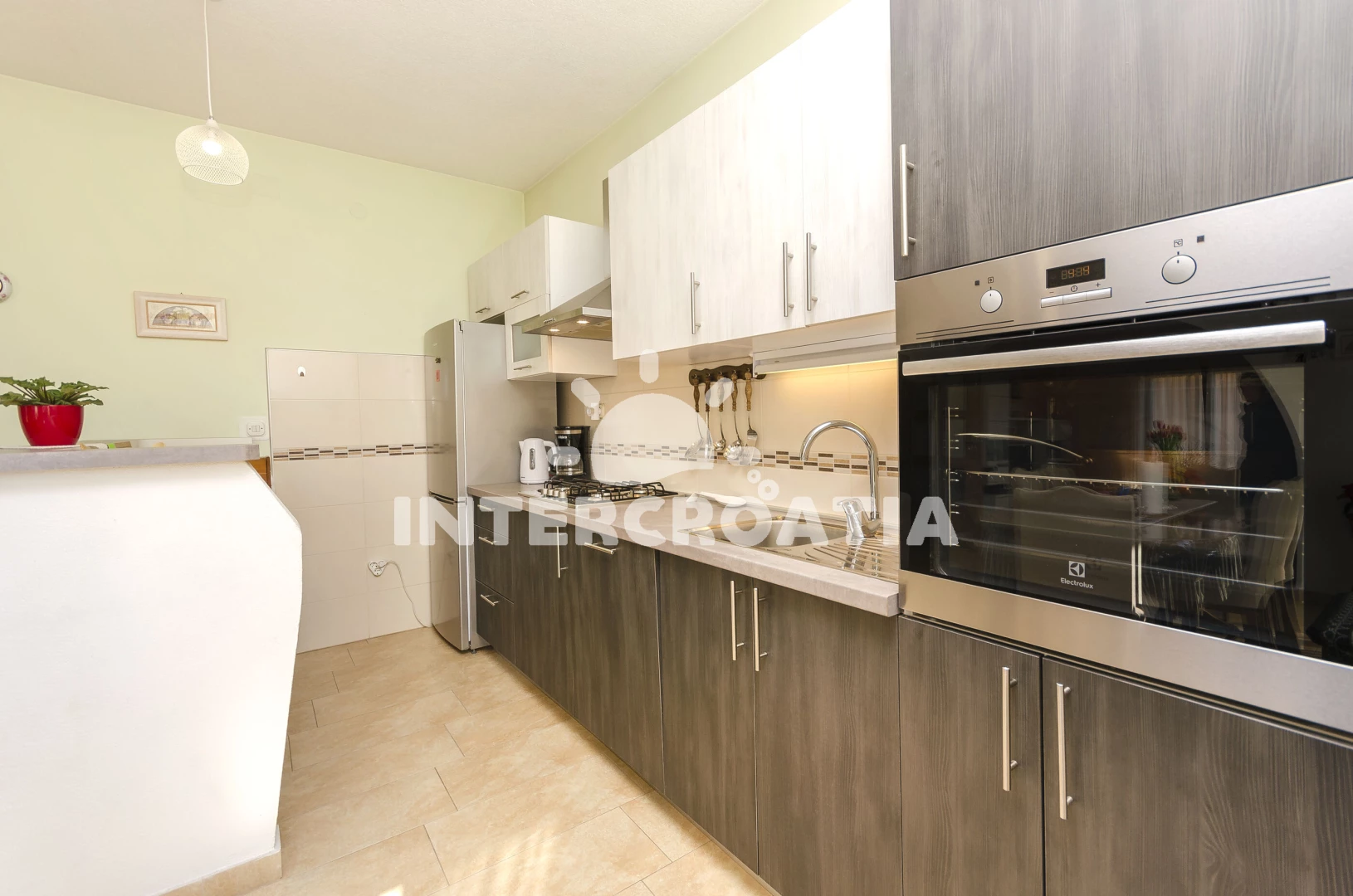 Vzdálenosti: Moře 420 m, pláž 1,1 km (oblázková a betonové desky), veřejná doprava 200 m, supermarket 300 m, bar 300 m, lékárna 500 m, ambulance 900 m, restaurace 1,2 km, centrum 1,4 km, park Plitvice 20 km,