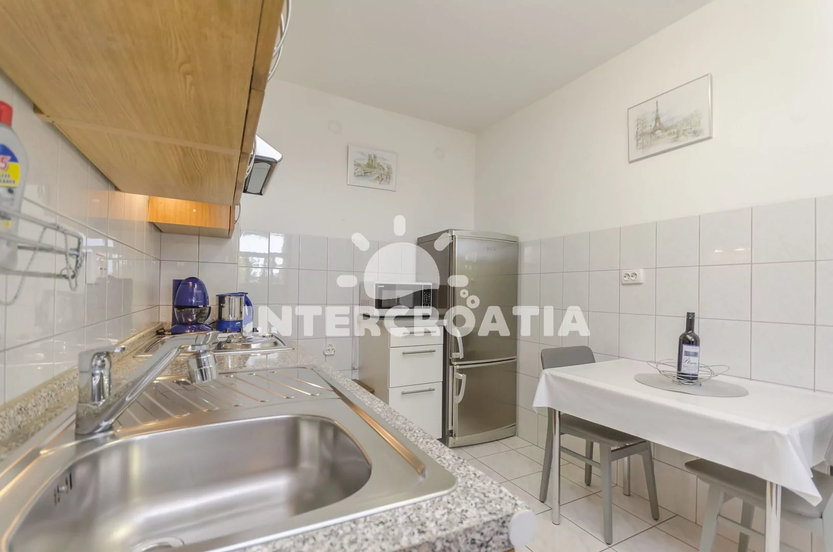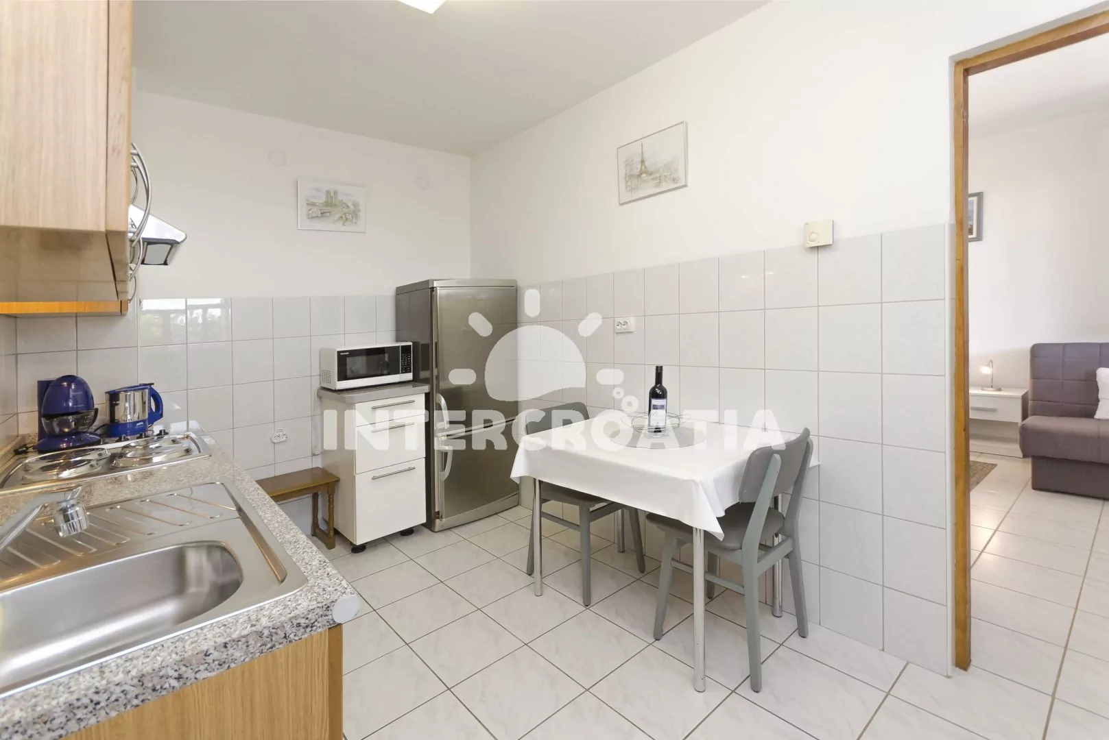 Vzdálenosti: Moře 800 m a oblázková pláž 1,8 km, supermarket 500 m, bar 600 m, restaurace 1 km, veřejná doprava 500 m, ambulance 800 m, lékárna 1 km, centrum 1,5 km, čerpací stanice 800 m, pošta, směnárna a banka 1,5 km, park Plitvice 11 km, letiště (Split) 50 km.