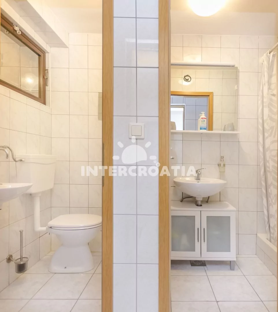 V proslulém Šibeniku čeká turisty nezapomenutelná dovolená. Moderní apartmánový dům se nachází 1,8 km od moře a oblázkové pláže Banj. Ta je udržovaná, dobře vybavená a s krásným výhledem na Šibenik. Do moře vede pozvolný přístup. Hned na pobřeží si můžete vychutnat občerstvení v restauraci. Sportovci také ocení venkovní posilovnu. Po promenádě kolem moře přijdete za chvíli do centra. Vzhledem k tomu, že Šibenik obklopuje nádherná příroda, najdete tu mnoho cyklistických stezek. Historické centrum se pyšní cennými stavbami. Při procházce vás zaujmou tři městské pevnosti, katedrála sv. Jakuba, kostel sv. Jana Křtitele, palác Orsiniů, Mořská brána a Knížecí palác. Patříte-li k milovníkům společenských událostí, máte se na co těšit. Pravidelně se konají hudební koncerty, gastronomické a zábavné akce. Výlet do Národního parku Krka doporučujeme podniknout všem věkovým kategoriím. Rozmanité možnosti, jak strávit vás volný čas, nabízí také Přírodní park Vranské jezero. Někoho zaujme rybaření, druzí dají přednost pěší túře. Dalším tipem na poznávací výlet je starobylý Trogir. Ten vás okouzlí významnými památkami a romantickou atmosférou.