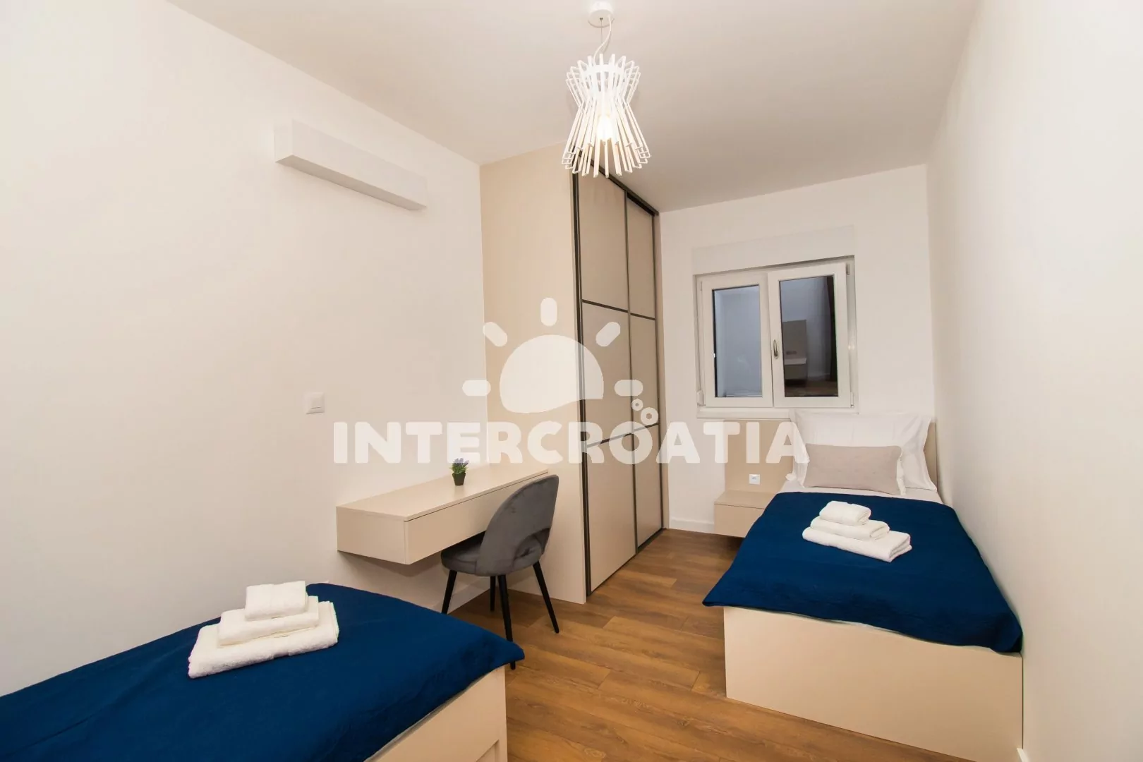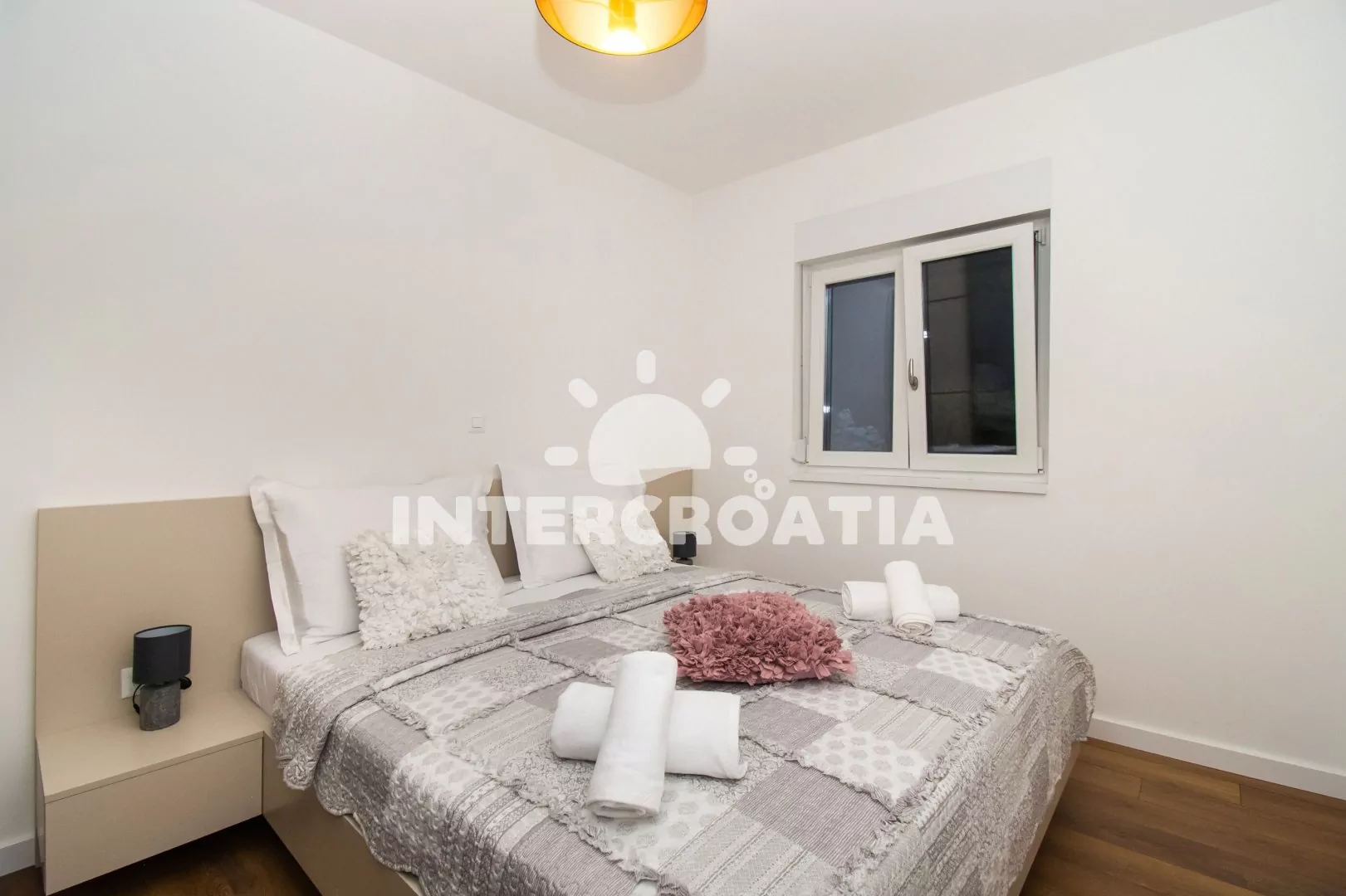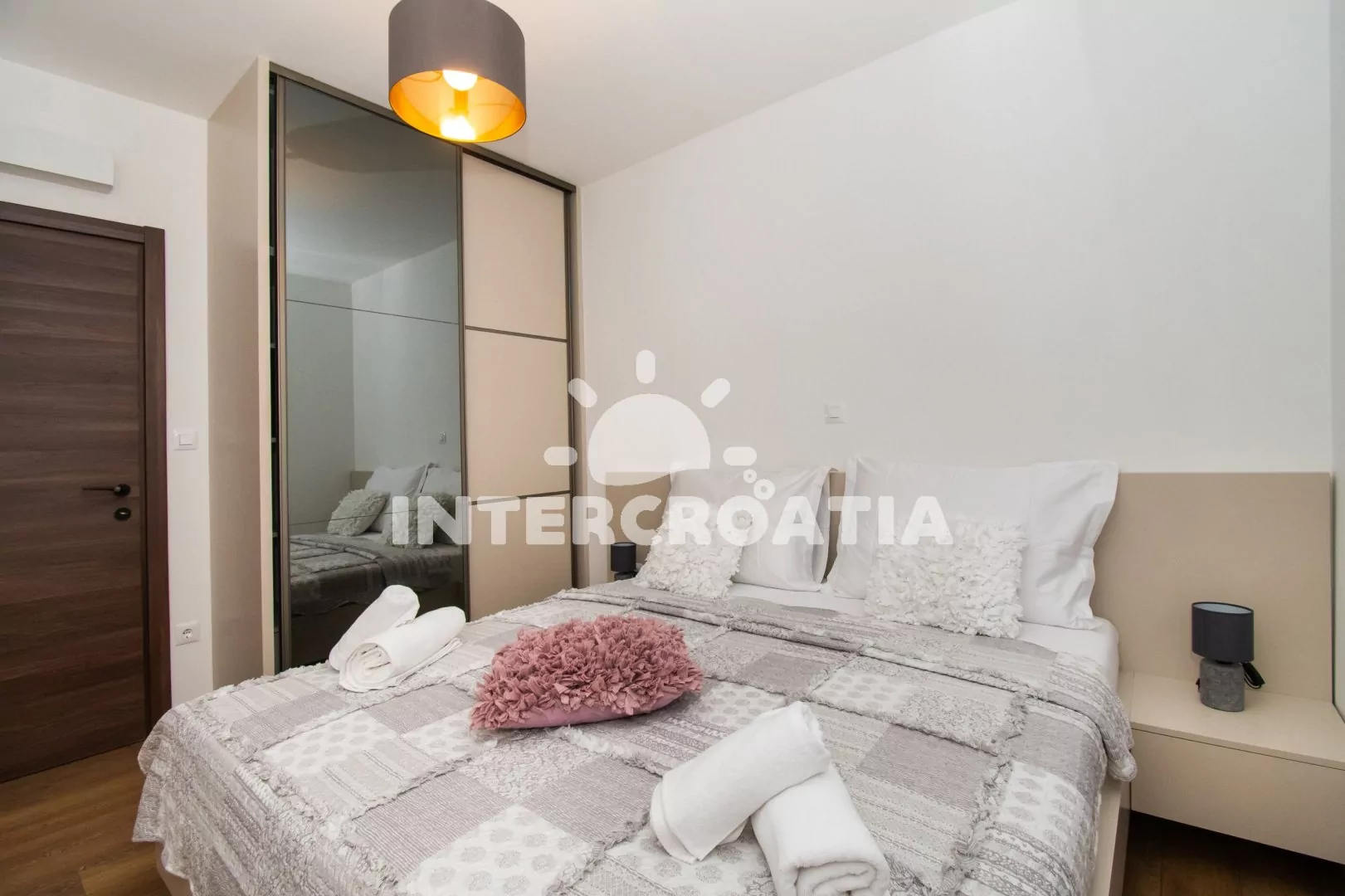 V proslulém Šibeniku čeká turisty nezapomenutelná dovolená. Moderní apartmánový dům se nachází 2,2 km od moře a oblázkové pláže Banj. Ta je udržovaná, dobře vybavená a s krásným výhledem na Šibenik. Do moře vede pozvolný přístup. Hned na pobřeží si můžete vychutnat občerstvení v restauraci. Sportovci také ocení venkovní posilovnu. Po promenádě kolem moře přijdete za chvíli do centra. Vzhledem k tomu, že Šibenik obklopuje nádherná příroda, najdete tu mnoho cyklistických stezek. Historické centrum se pyšní cennými stavbami. Při procházce vás zaujmou tři městské pevnosti, katedrála sv. Jakuba, kostel sv. Jana Křtitele, palác Orsiniů, Mořská brána a Knížecí palác. Patříte-li k milovníkům společenských událostí, máte se na co těšit. Pravidelně se konají hudební koncerty, gastronomické a zábavné akce. Výlet do Národního parku Krka doporučujeme podniknout všem věkovým kategoriím. Rozmanité možnosti, jak strávit vás volný čas, nabízí také Přírodní park Vranské jezero. Někoho zaujme rybaření, druzí dají přednost pěší túře. Dalším tipem na poznávací výlet je starobylý Trogir. Ten vás okouzlí významnými památkami a romantickou atmosférou.
