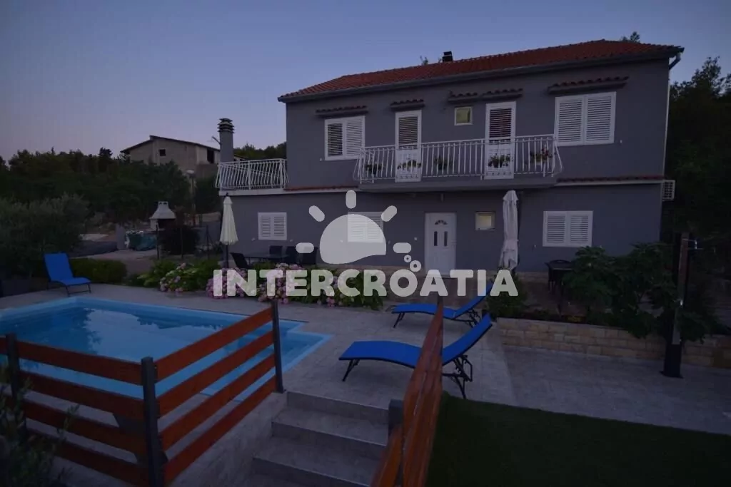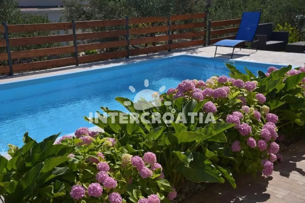 Vila s bazénem se nachází v klidné ulici města a 3 km pěší chůzí od oblázkové pláže Banj. U vily je k dispozici venkovní bazén s lehátky, slunečníky a sprcha. K dispozici je ubytování ve 2 klimatizovaných apartmánech s lodžiemi a venkovním posezením. Parkovací místa pro automobily u vily.
