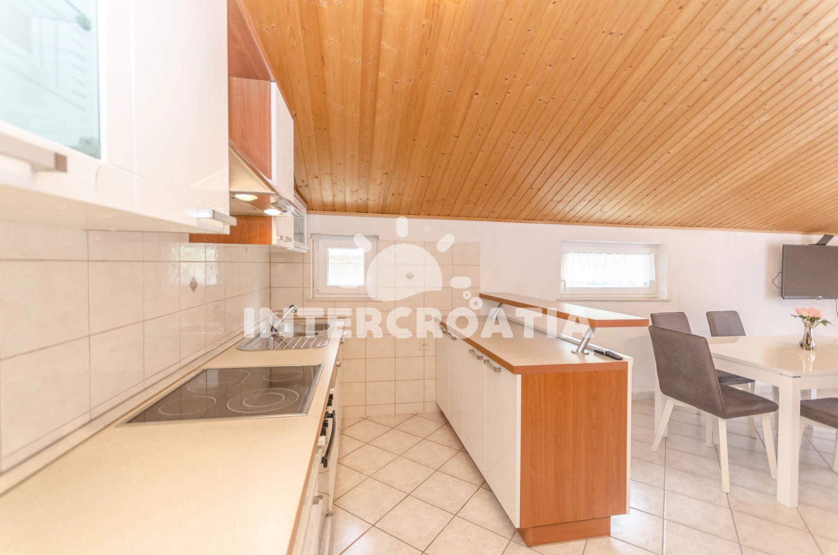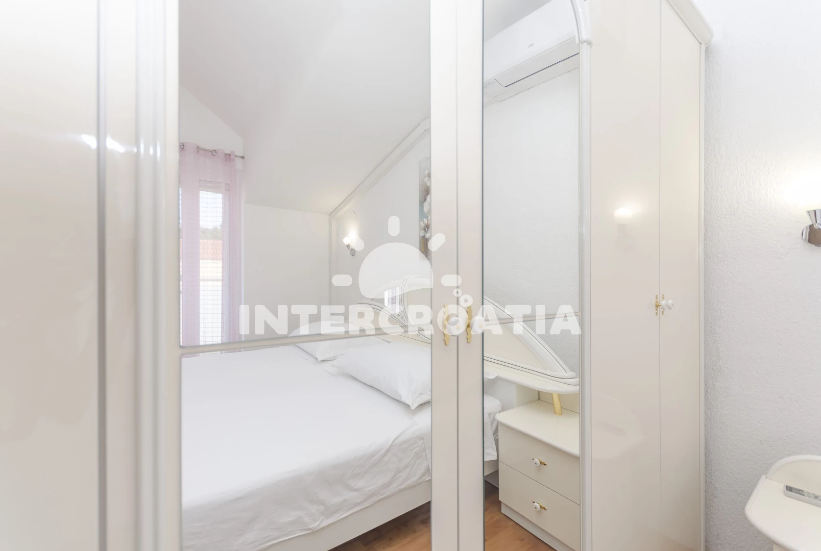 V proslulém Šibeniku čeká turisty nezapomenutelná dovolená. Moderní apartmánový dům se nachází 1,2 km od moře a oblázkové pláže Banj. Ta je udržovaná, dobře vybavená a s krásným výhledem na Šibenik. Do moře vede pozvolný přístup. Hned na pobřeží si můžete vychutnat občerstvení v restauraci. Sportovci také ocení venkovní posilovnu. Po promenádě kolem moře přijdete za chvíli do centra. Vzhledem k tomu, že Šibenik obklopuje nádherná příroda, najdete tu mnoho cyklistických stezek. Historické centrum se pyšní cennými stavbami. Při procházce vás zaujmou tři městské pevnosti, katedrála sv. Jakuba, kostel sv. Jana Křtitele, palác Orsiniů, Mořská brána a Knížecí palác. Patříte-li k milovníkům společenských událostí, máte se na co těšit. Pravidelně se konají hudební koncerty, gastronomické a zábavné akce. Výlet do Národního parku Krka doporučujeme podniknout všem věkovým kategoriím. Rozmanité možnosti, jak strávit vás volný čas, nabízí také Přírodní park Vranské jezero. Někoho zaujme rybaření, druzí dají přednost pěší túře. Dalším tipem na poznávací výlet je starobylý Trogir. Ten vás okouzlí významnými památkami a romantickou atmosférou.