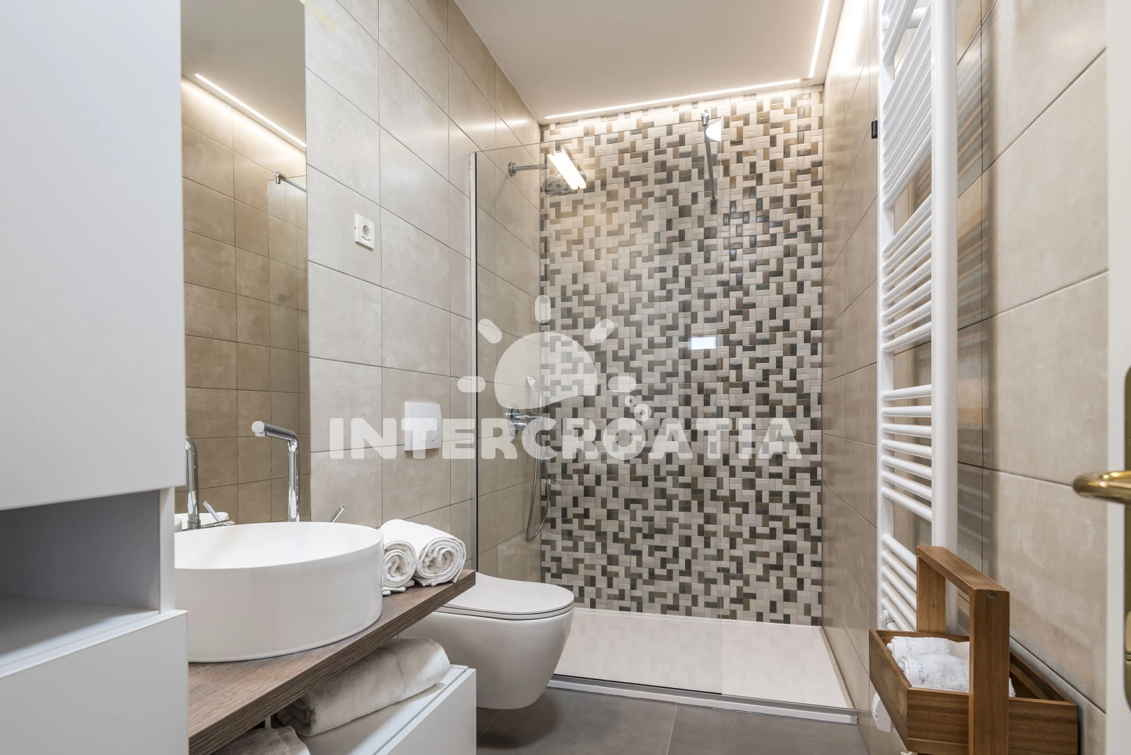 V proslulém Šibeniku čeká turisty nezapomenutelná dovolená. Moderní apartmánový dům se nachází 6 minut od moře a oblázkové pláže Banj. Ta je udržovaná, dobře vybavená a s krásným výhledem na Šibenik. Do moře vede pozvolný přístup. Hned na pobřeží si můžete vychutnat občerstvení v restauraci. Sportovci také ocení venkovní posilovnu. Po promenádě kolem moře přijdete za chvíli do centra. Vzhledem k tomu, že Šibenik obklopuje nádherná příroda, najdete tu mnoho cyklistických stezek. Historické centrum se pyšní cennými stavbami. Při procházce vás zaujmou tři městské pevnosti, katedrála sv. Jakuba, kostel sv. Jana Křtitele, palác Orsiniů, Mořská brána a Knížecí palác. Patříte-li k milovníkům společenských událostí, máte se na co těšit. Pravidelně se konají hudební koncerty, gastronomické a zábavné akce. Výlet do Národního parku Krka doporučujeme podniknout všem věkovým kategoriím. Rozmanité možnosti, jak strávit vás volný čas, nabízí také Přírodní park Vranské jezero. Někoho zaujme rybaření, druzí dají přednost pěší túře. Dalším tipem na poznávací výlet je starobylý Trogir. Ten vás okouzlí významnými památkami a romantickou atmosférou.