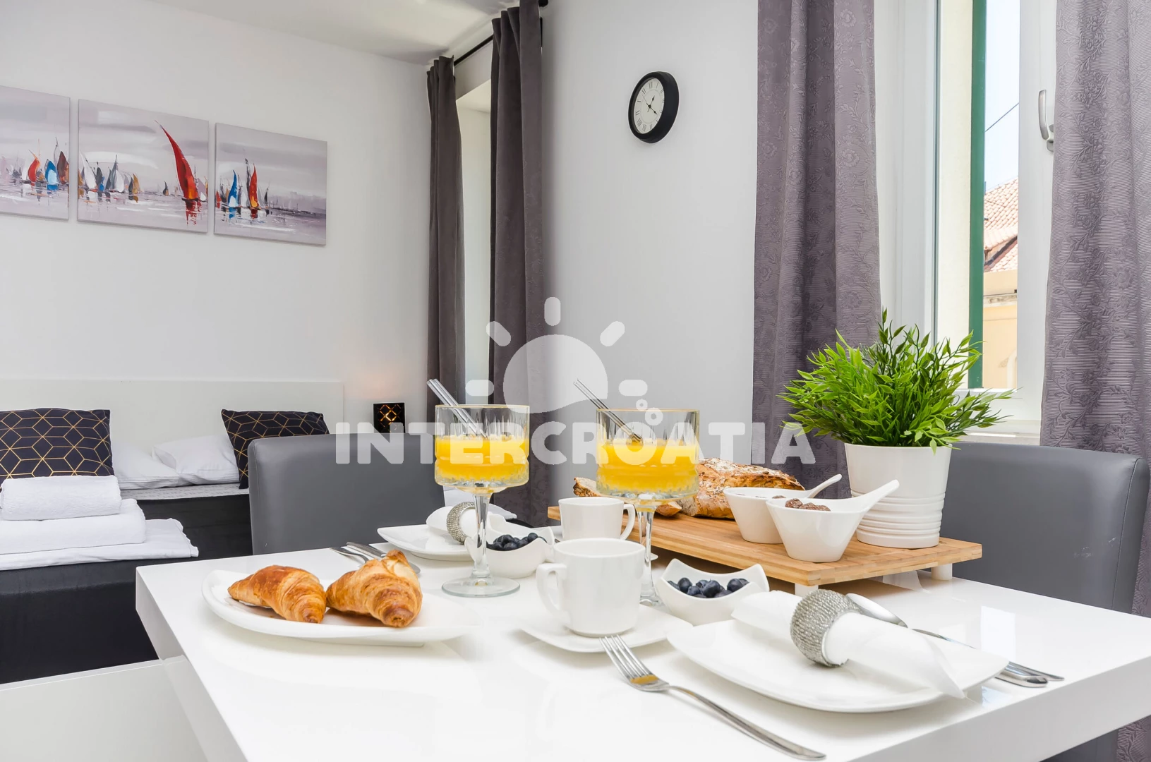 Cestovali jsme s přáteli, zarezervovali si dvoupatrový apartmán a studio s kuchyňským koutem - naprosto skvělá volba: skvělá lokalita, velmi blízko starého města a veřejného parkoviště a samotné pokoje - na vysoké evropské úrovni - moderně zařízené, velmi prostorné a čisté, také ložnice v bytě sama o sobě je působivá. Rádi bychom poděkovali hostiteli za jeho laskavé gesto, který se ze všech sil snažil zajistit, abychom se mohli ubytovat kolem 13:00 kvůli našemu brzkému příjezdu do města. Pokud budeme příští rok v Šibeniku, určitě zvolíme stejné místo. Vřele doporučuji! - nemám žádné negativní komentáře :)