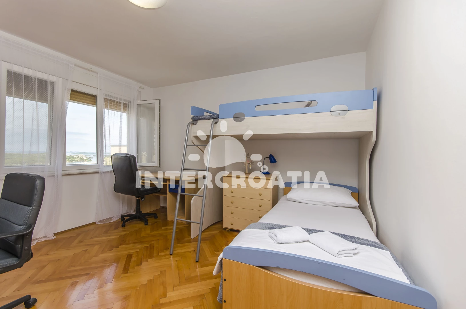Apartmán (45 m2) s balkonem, a výhledem na moře. Nachází se ve 4. nebo vyšším patře objektu. Apartmán má 2 ložnice a je vhodný pro až 3 osoby. Kuchyňská linka je vybavena varnou deskou, troubou, myčkou na nádobí, rychlovarnou konvicí, nádobím, lednicí, mrazákem. K dispozici televize, žehlička. První ložnice s dvoulůžkem. Druhá ložnice s jednolůžkem. Koupelna se sprchovým koutem, umyvadlem, fénem a WC.