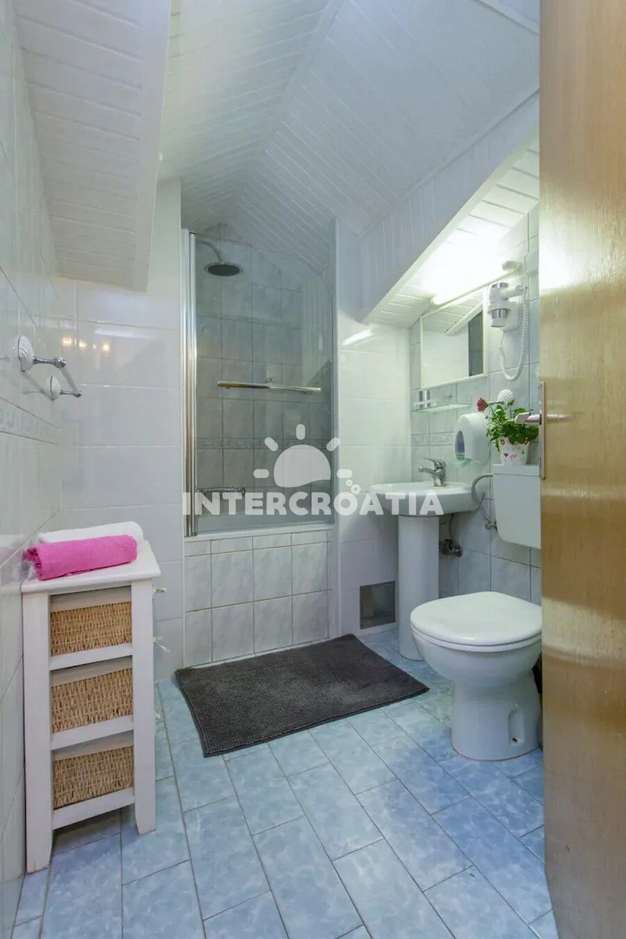 Vzdálenosti: Moře 500 m, pláž 500 m (oblázková a betonové desky), centrum 10 m, supermarket 10 m, bar 10 m, směnárna 20 m, restaurace 20 m, pošta 30 m, veřejná doprava 100 m, park Plitvice 200 m, půjčovna kol 400 m, půjčovna motorových člunů 400 m, lékárna 400 m, ambulance 400 m, marina 500 m, čerpací stanice 19 km, trajekt (Šibenik) 20 km, letiště (Split) 60 km,