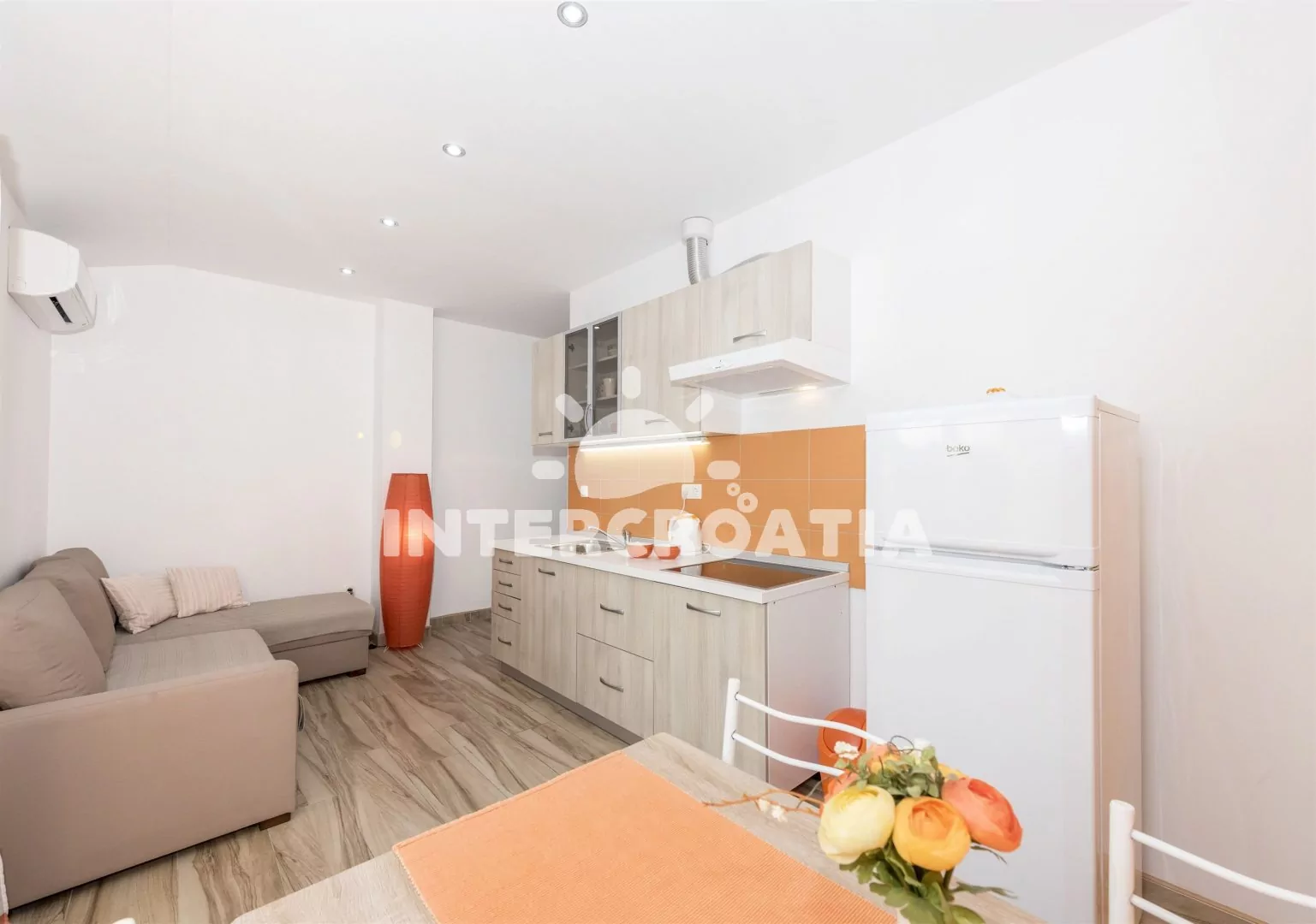 Vzdálenosti: Moře a pláž 150 m, centrum 200 m, restaurace, bar, supermarket, směnárna 100 m, diskotéka 1 km, lékárna, ambulance, čerpací stanice, banka, pošta, tenis, potápění, venkovní a vnitřní bazén 2 km, přístav 2,5 km, letiště 65 km, trajekt 80 km.