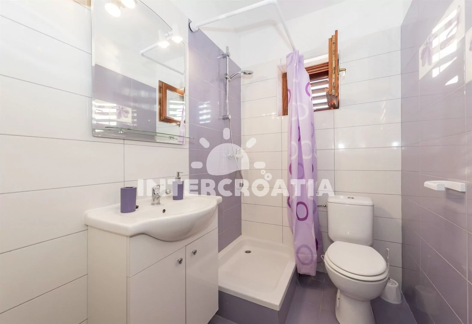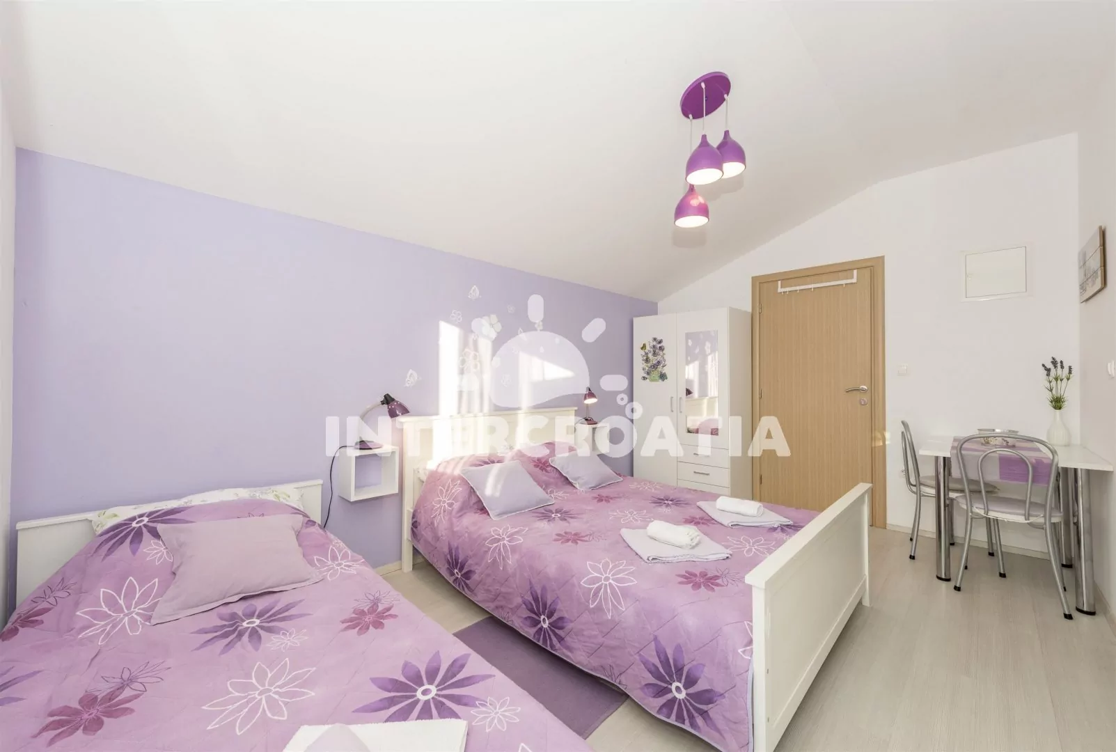 Moderně vybavený apartmánový dům s dvěma patry a velkým pozemkem se zahradou, grilem a parkovacími místy. Z domu je výhled na moře a do zahrady, apartmány s balkony a venkovním posezením.