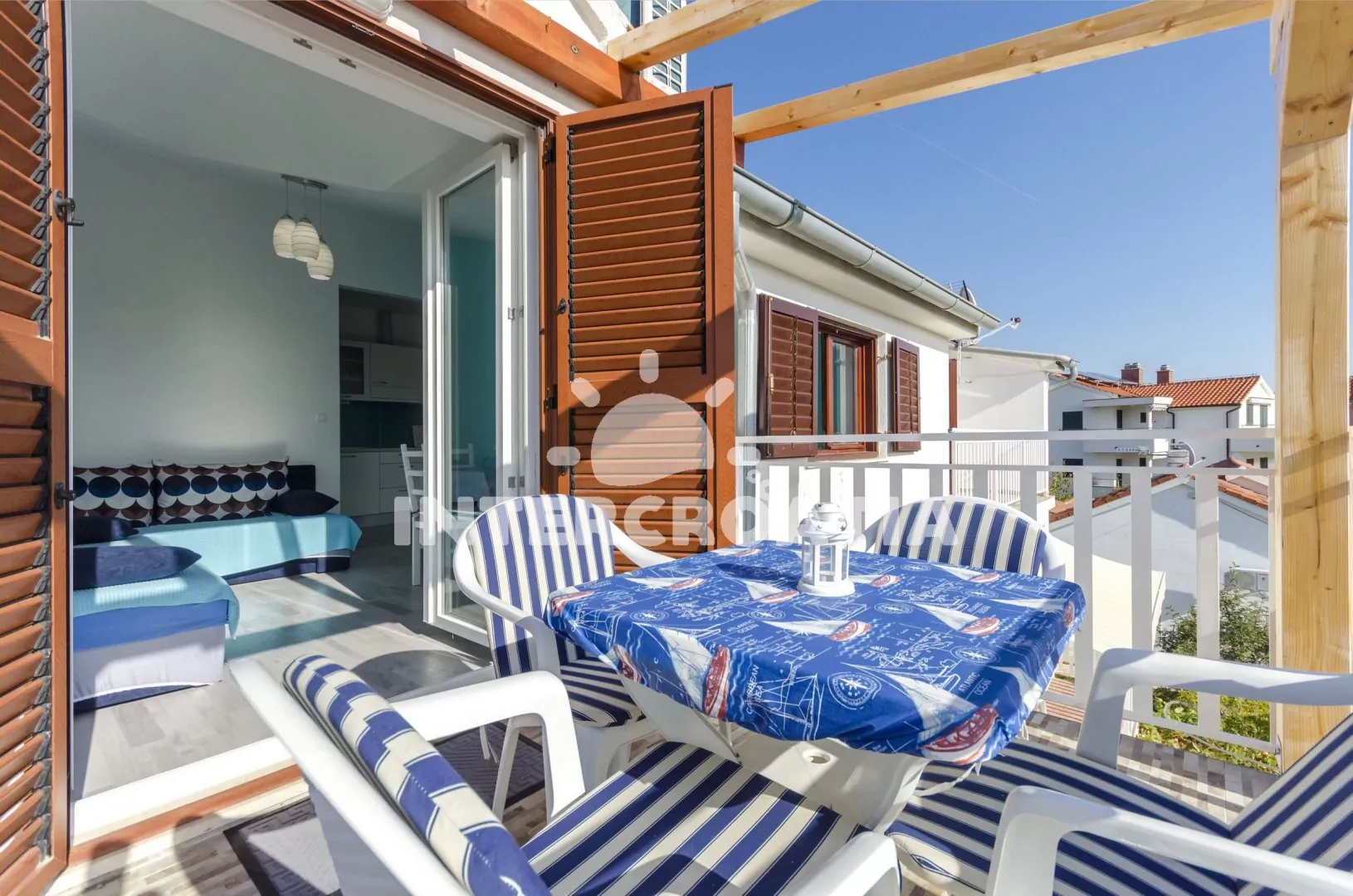 Severní Dalmácie v malém městečku Srima vzdáleném 3 km od Vodice. Ubytování se nachází 150 m od oblázkové pláže s průzračně čistým mořem.