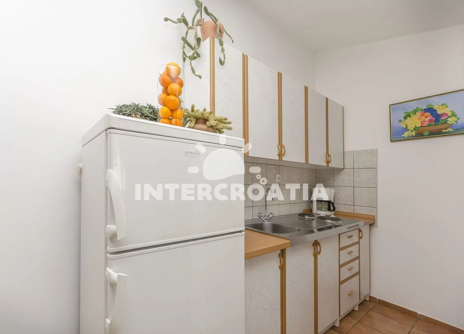 Vzdálenosti: Moře a oblázková pláž 300 m, centrum, lékárna, ambulance 1,5 km, veřejná doprava 100 m, supermarket 120 m, půjčovna cyklistických kol, tenis 150 m, bar 240 m, restaurace 360 m, potápění 1 km, venkovní bazén 1,3 km, diskotéka 1,5 km, přístav 1,7 km, banka, čerpací stanice, směnárna 1,8 km, pošta 1,9 km, trajekt 7,9 km, vnitřní bazén, minigolf, letiště 8 km.