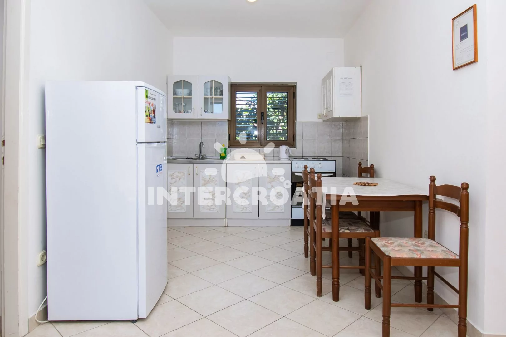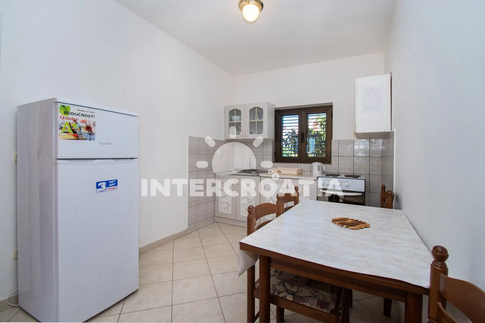 Vzdálenosti: Moře a pláž 50 m, centrum 600 m, restaurace, bar 200 m, supermarket 400 m, veřejná doprava 600 m, tenis 600 m, půjčovna kol a motorových člunů 1 km, ambulance a lékárna 1,2 km, směnárna 1 km, banka a pošta 1,7 km, přístav 1,4 km, diskotéka 1,7 km, čerpací stanice 1,6 km, park Plitvice 23 km, letiště 68 km, trajekt 89 km.