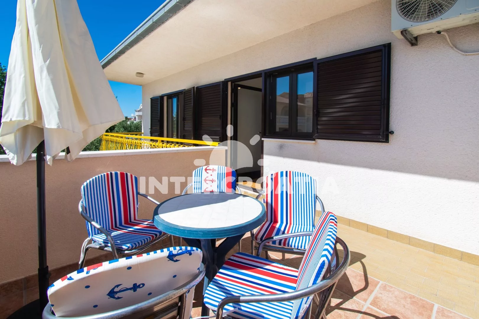 Výborně umístěný apartmánový dům jen pár kroků od pláže a s výhledem na moře. Dům nabízí ubytování v klimatizovaných apartmánech s lodžiemi a venkovním posezením. U domu společná terasa s posezením a zděným grilem. Parkovací místa pro automobily jsou přímo u domu.