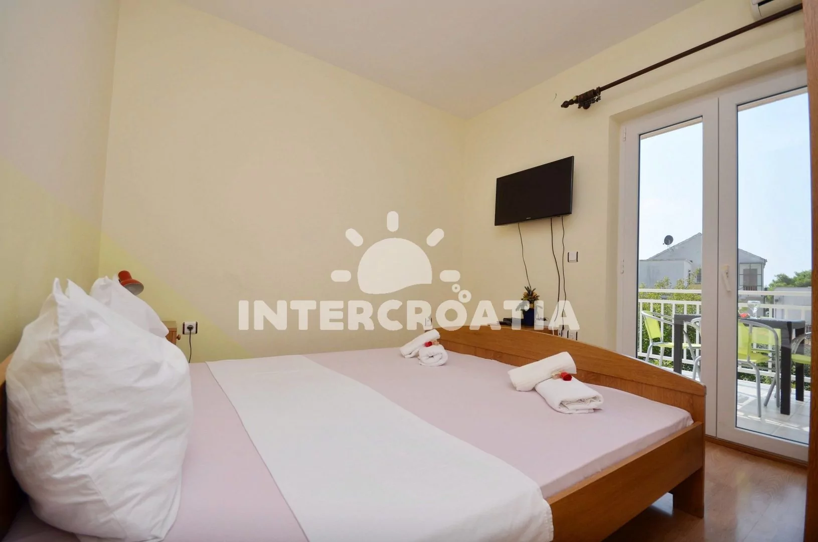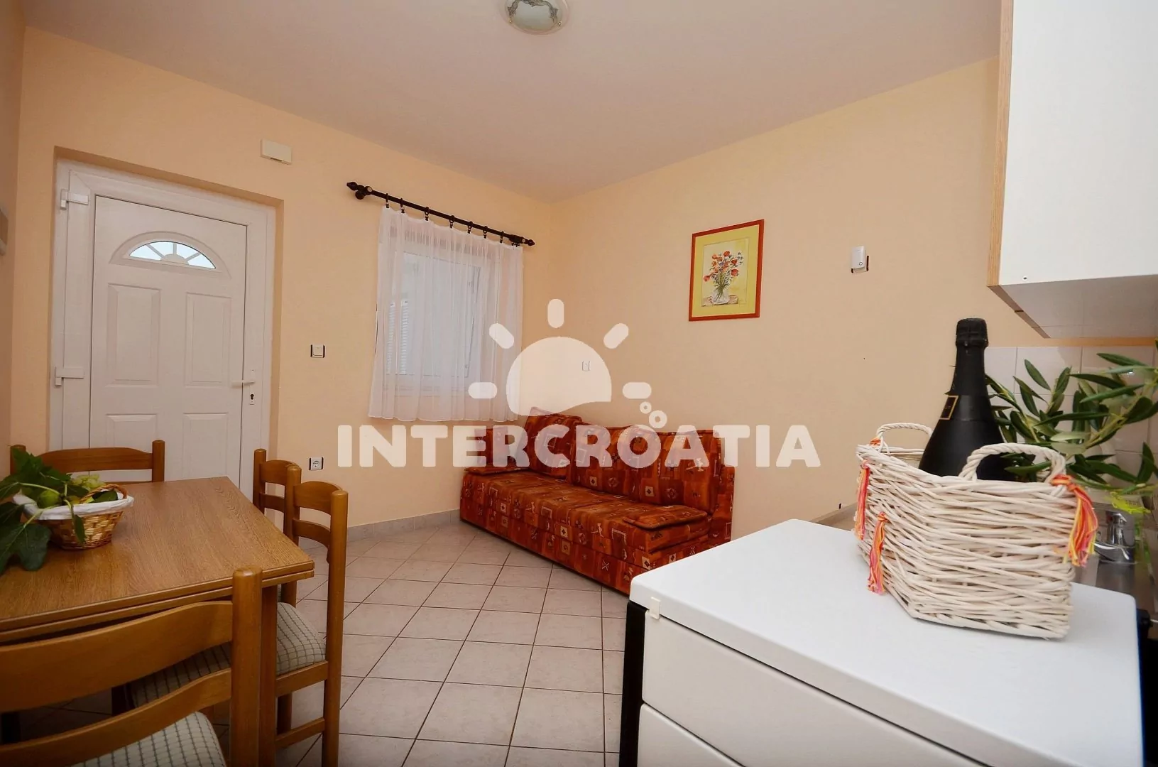 Vzdálenosti: Moře 70 m, oblázková pláž 300 m, centrum 300 m, restaurace, bar 350 m, supermarket 400 m, veřejná doprava 700 m, tenis 1,9 km, ambulance, lékárna, čerpací stanice a muzeum 2,7 km, potápění 2,5 km, diskotéka 3 km, letiště (Zadar) 68 km, trajekt (Split) 98 km.