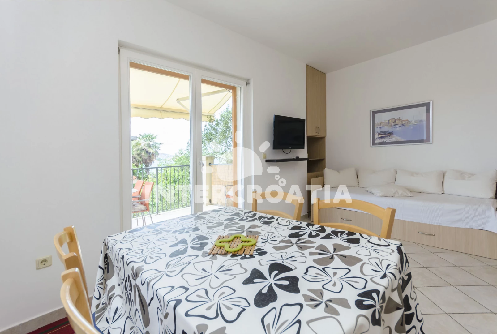 Apartmán (2) s balkonem. Nachází se v objektu. Apartmán má 1 ložnici a je vhodný pro až 2 osoby. Kuchyňská linka je vybavena varnou deskou, kávovarem, nádobím, lednicí, mrazákem. V obývací místnosti…