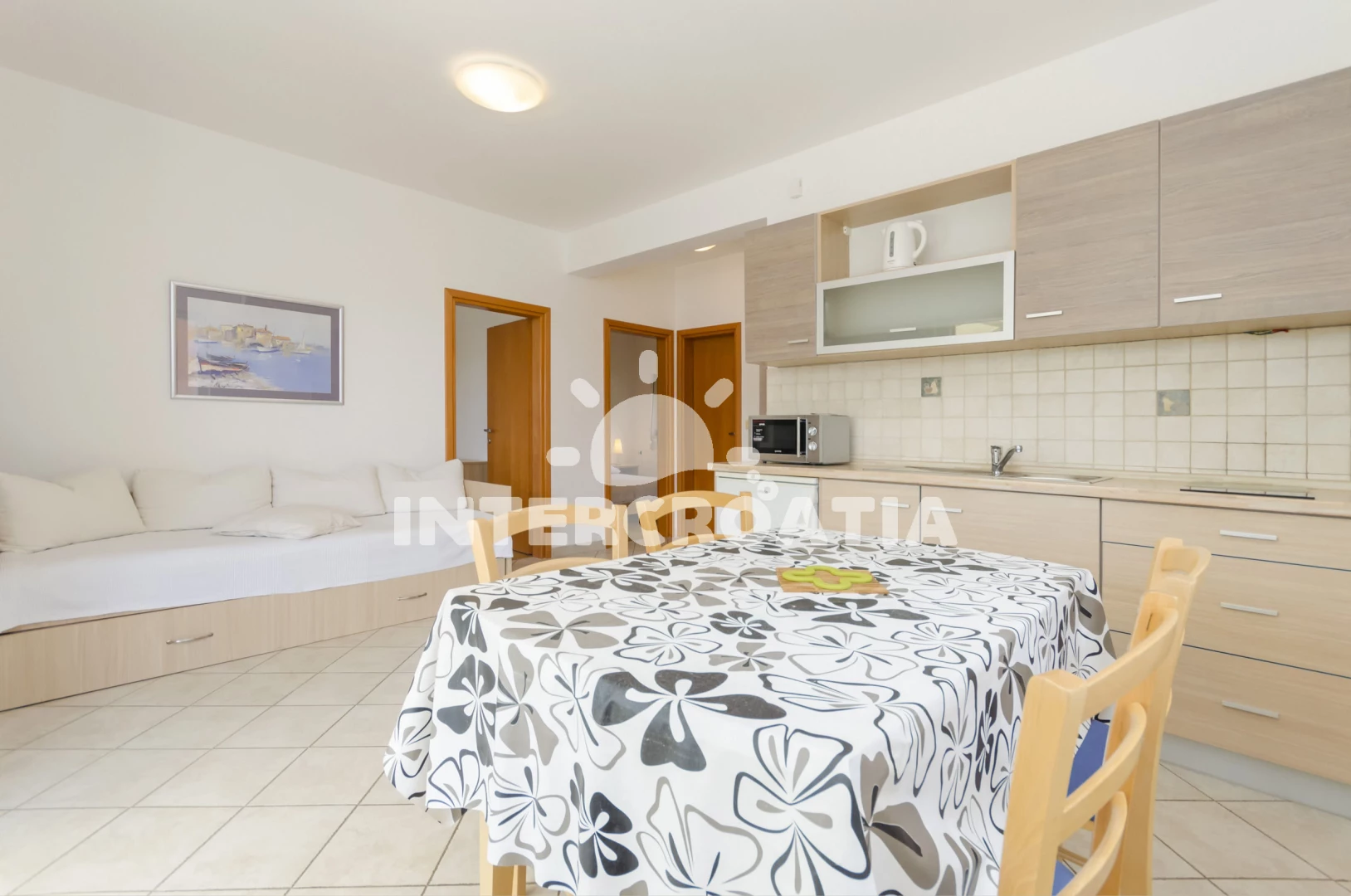 Apartmán (2) s balkonem. Nachází se v objektu. Apartmán má 1 ložnici a je vhodný pro až 2 osoby. Kuchyňská linka je vybavena varnou deskou, kávovarem, nádobím, lednicí, mrazákem. V obývací místnosti je rozložitelná pohovka (extra lůžko pro osoby). K dispozici televize, sejf, žehlička.