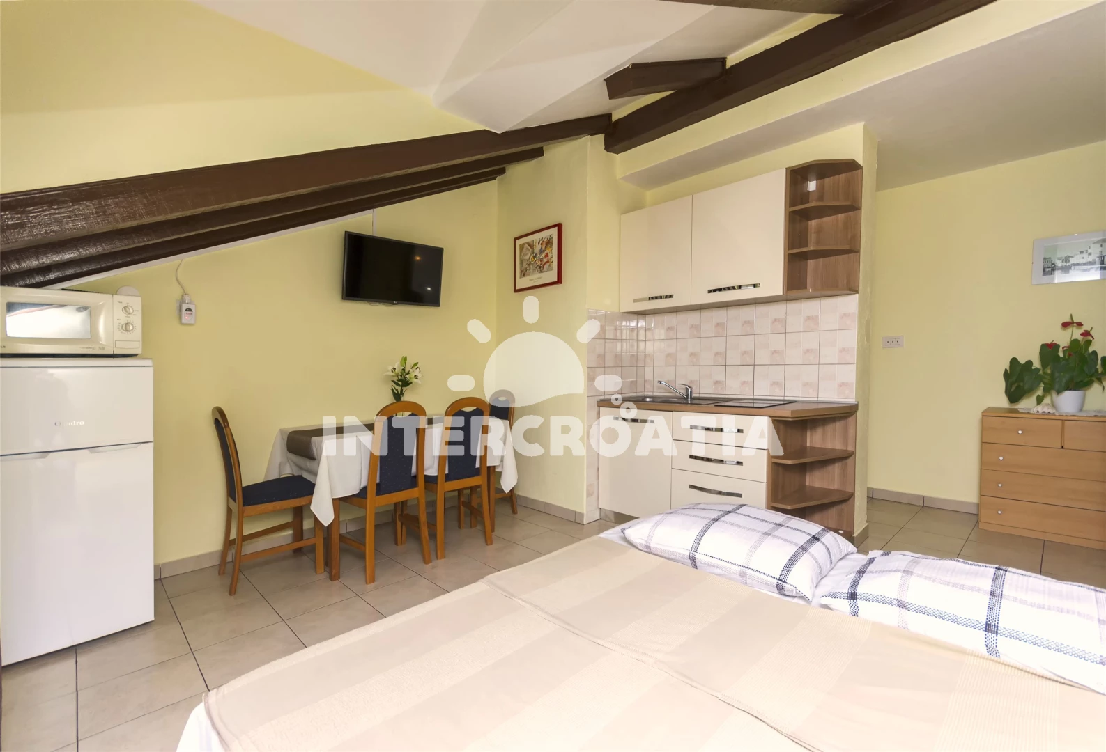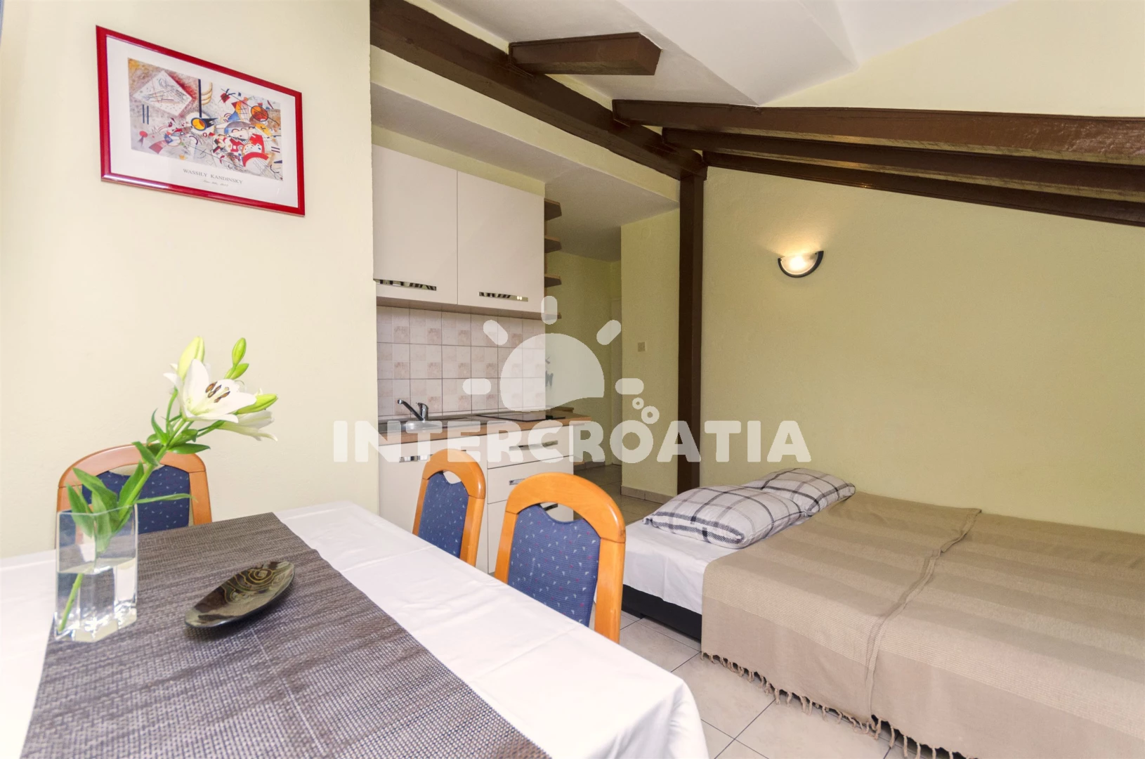 Apartmán (30 m2) s balkonem, a výhledem na moře. Nachází se ve 2. patře objektu. Apartmán má 1 ložnici a je vhodný pro až 4 osoby. Kuchyňská linka je vybavena varnou deskou, kávovarem, mikrovlnnou…