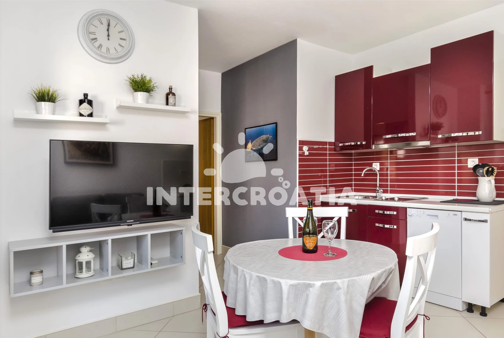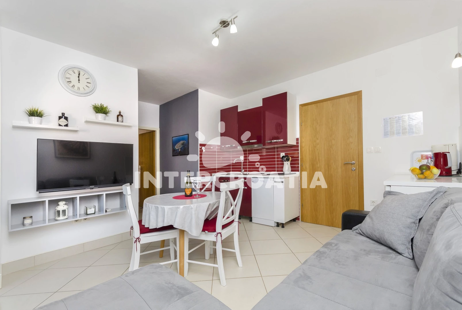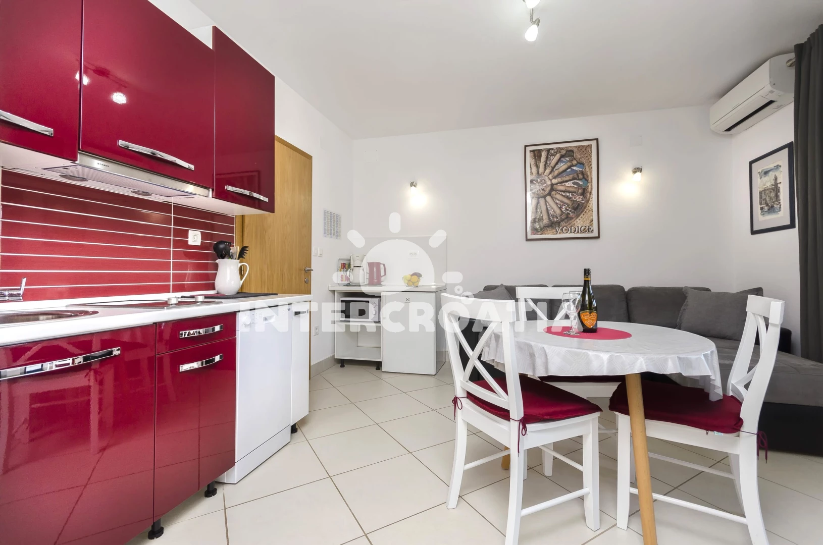 Vzdálenosti: Moře 170 m, pláž 170 m (oblázková a betonové desky), supermarket 60 m, restaurace 200 m, bar 200 m, centrum 400 m, park Plitvice 25,0 km, letiště (Zadar) 65 km, trajekt (Split) 85 km,