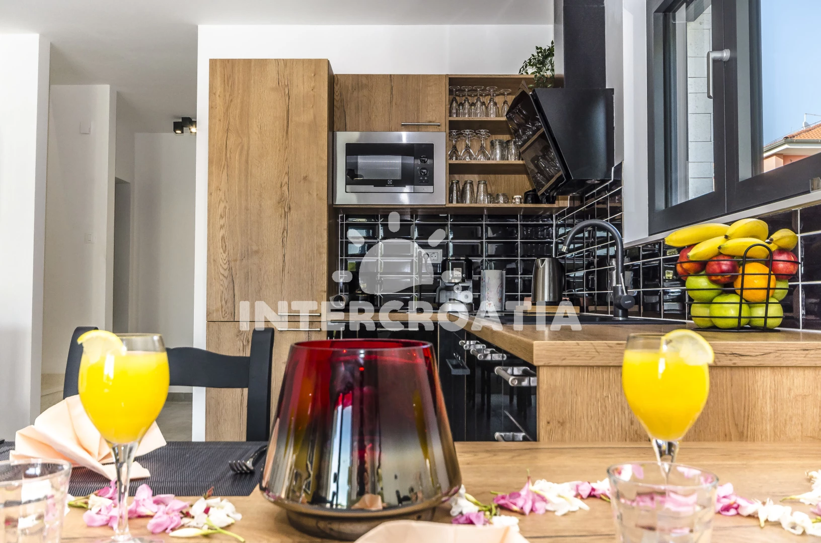 Vzdálenosti: Moře 100 m, pláž 200 m (písčitá a oblázková), bar 200 m, restaurace 200 m, centrum 300 m, supermarket 300 m, čerpací stanice 2 km, ambulance 2,8 km, lékárna 2,8 km, park Plitvice 23 km, letiště (Zadar) 68 km, trajekt (Split) 98 km,