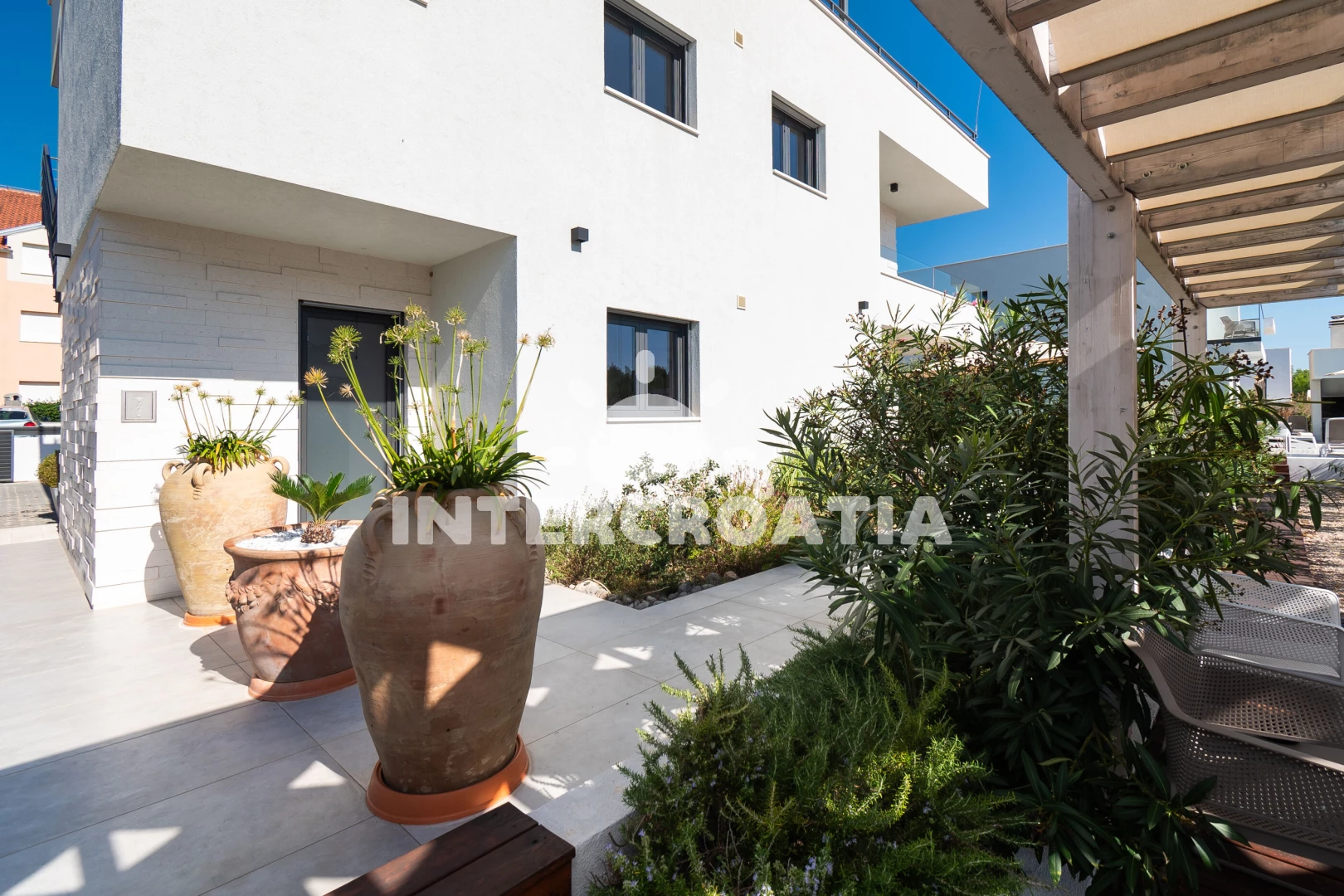 Vzdálenosti: Moře 100 m, pláž 200 m (písčitá a oblázková), restaurace 200 m, bar 200 m, centrum 300 m, supermarket 300 m, čerpací stanice 2 km, ambulance 2,8 km, lékárna 2,8 km, letiště (Zadar) 68 km, trajekt (Split) 98 km,