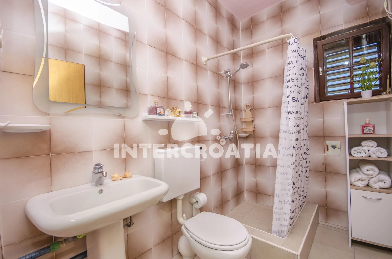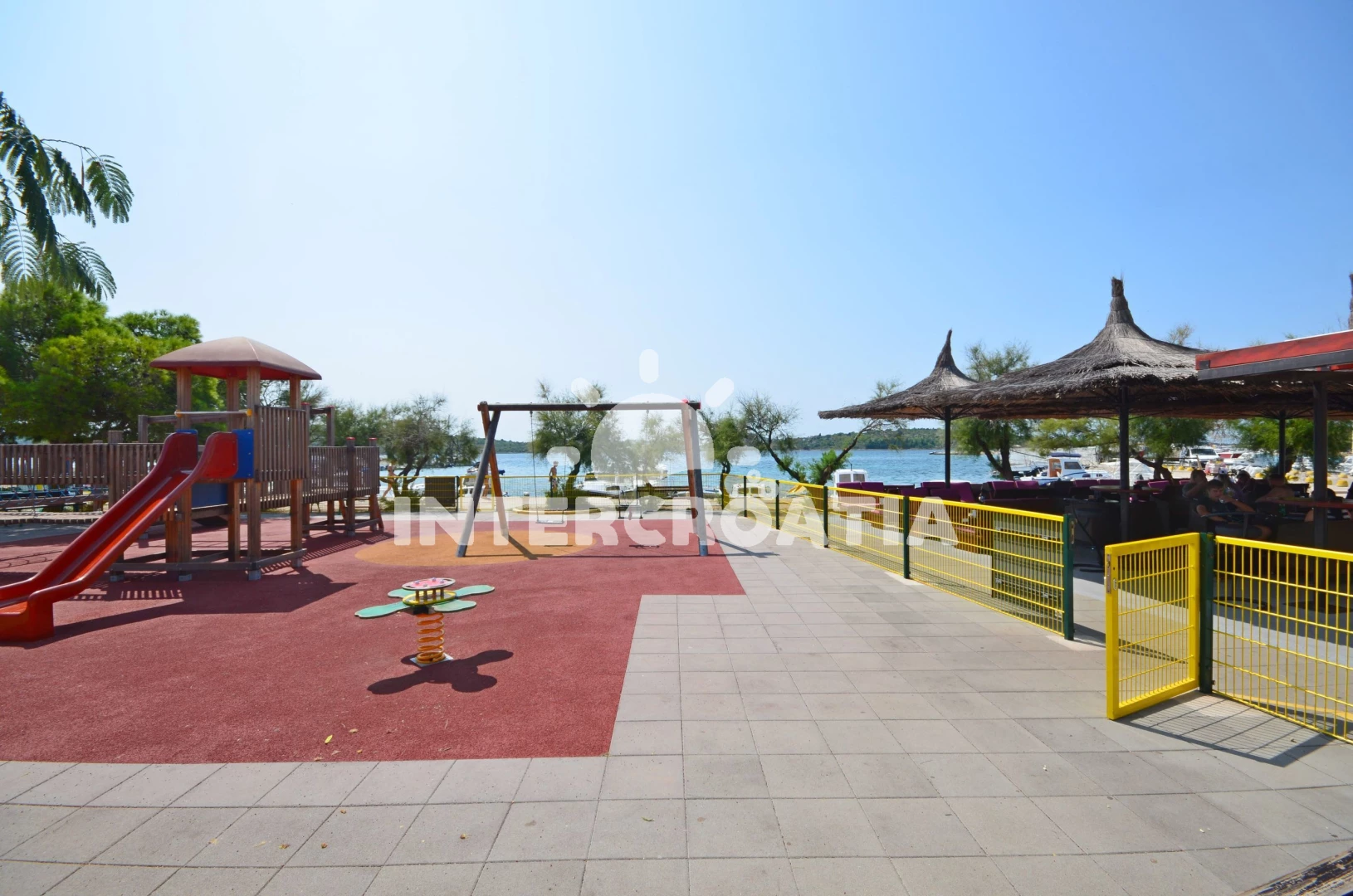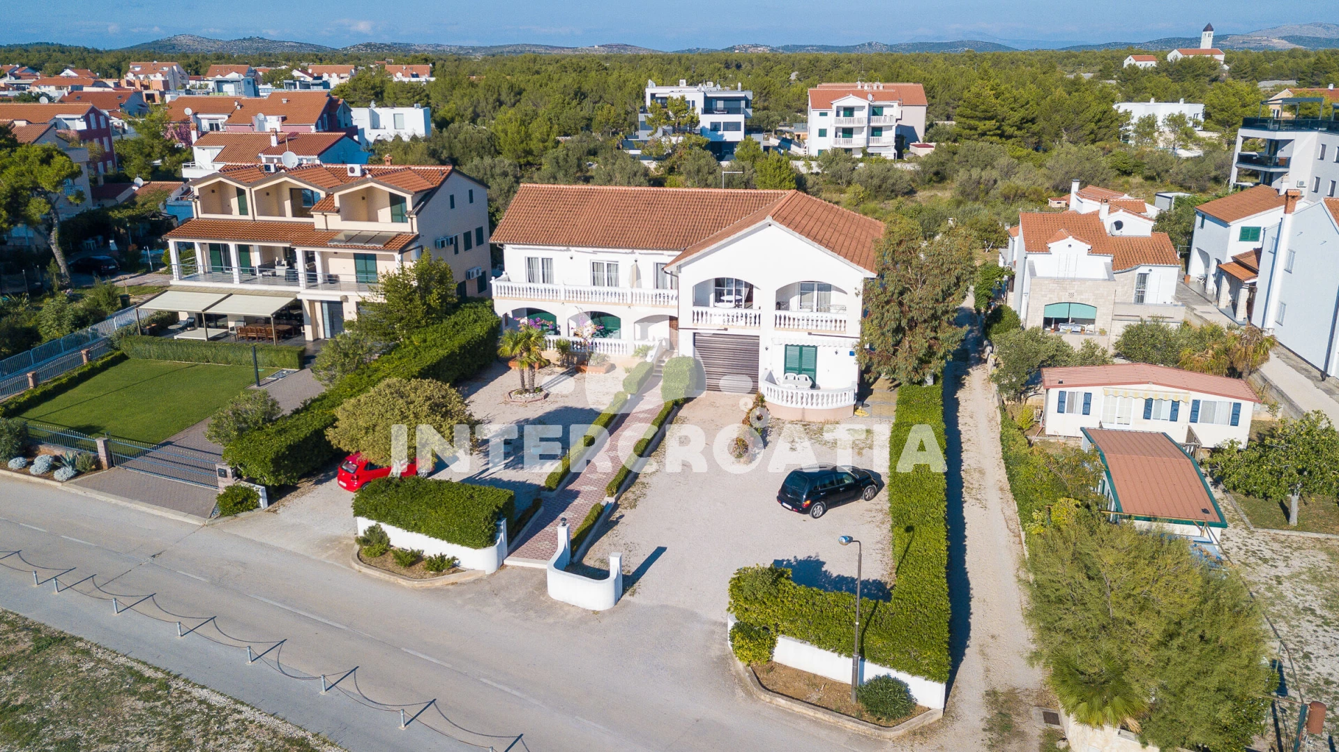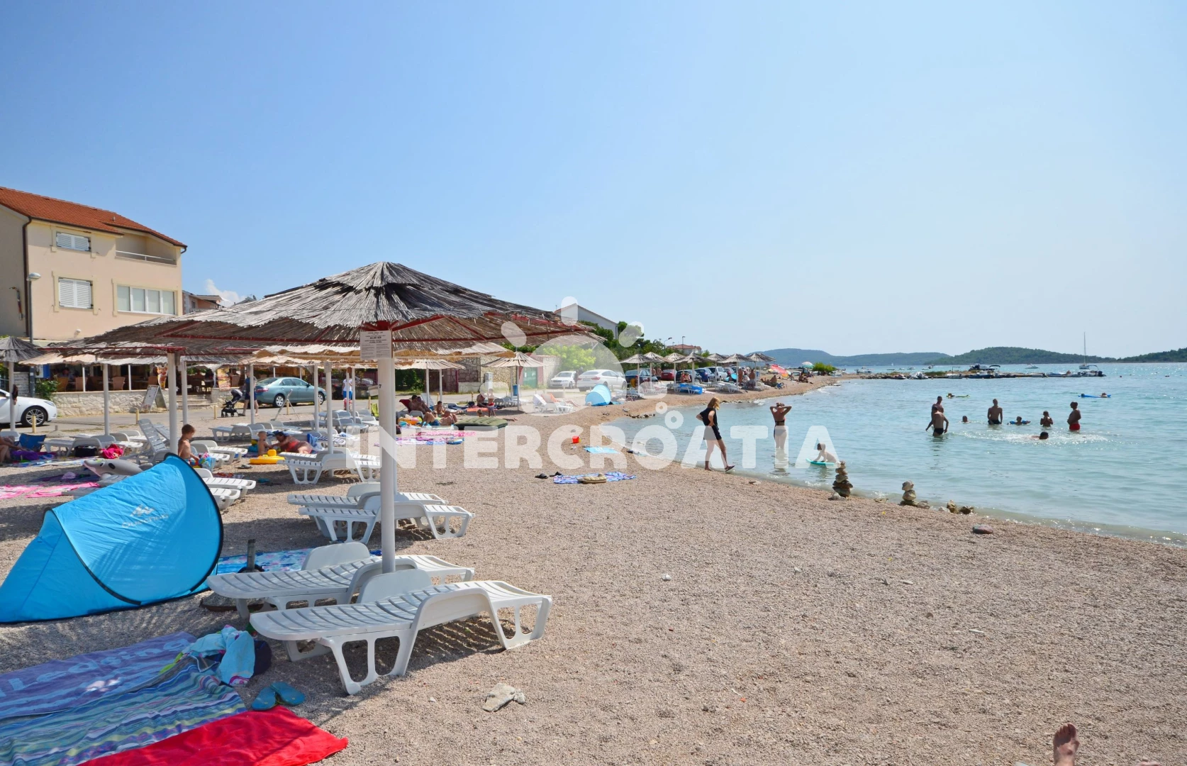 Vzdálenosti: Moře 50 m, pláž 60 m (písčitá a oblázková), kotviště pro čluny 100 m, restaurace 150 m, bar 150 m, veřejná doprava 400 m, centrum 500 m, supermarket 500 m, směnárna 2 km, lékárna 3 km, banka 3 km, čerpací stanice 3 km, marina 3 km, ambulance 3 km, park Plitvice 20 km, diskotéka 25 km, letiště (Zadar) 68 km, trajekt (Split) 90 km,