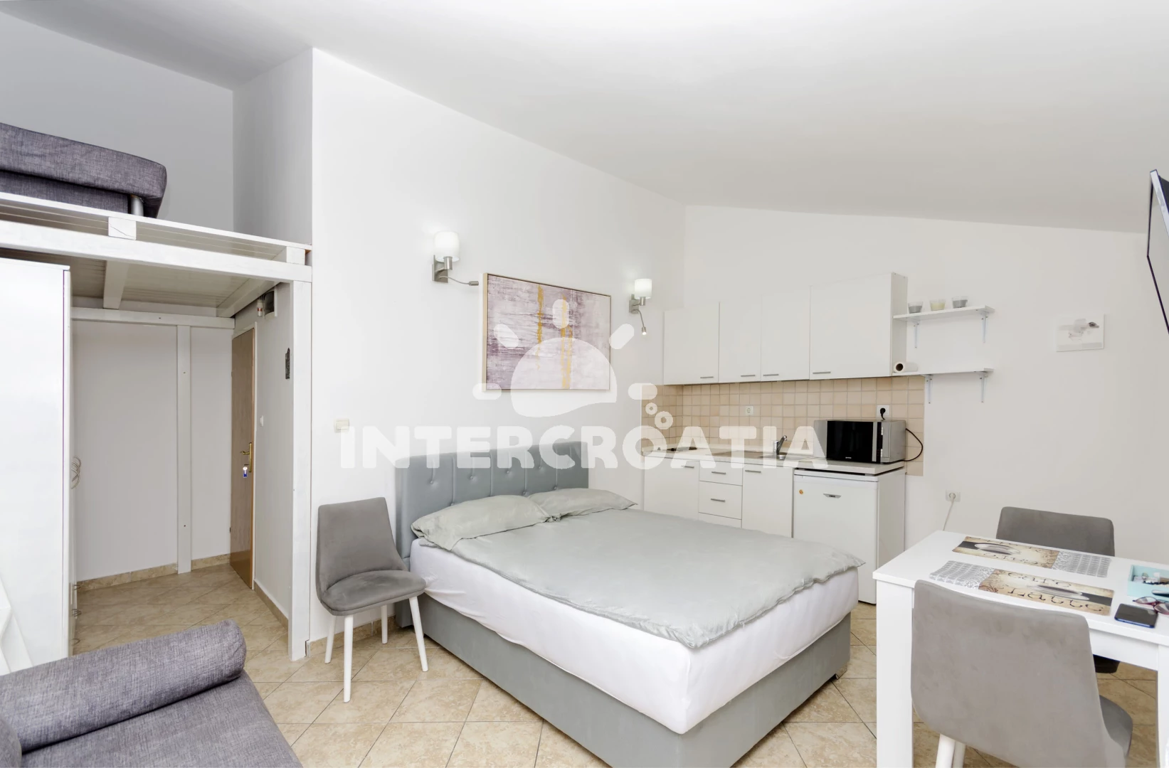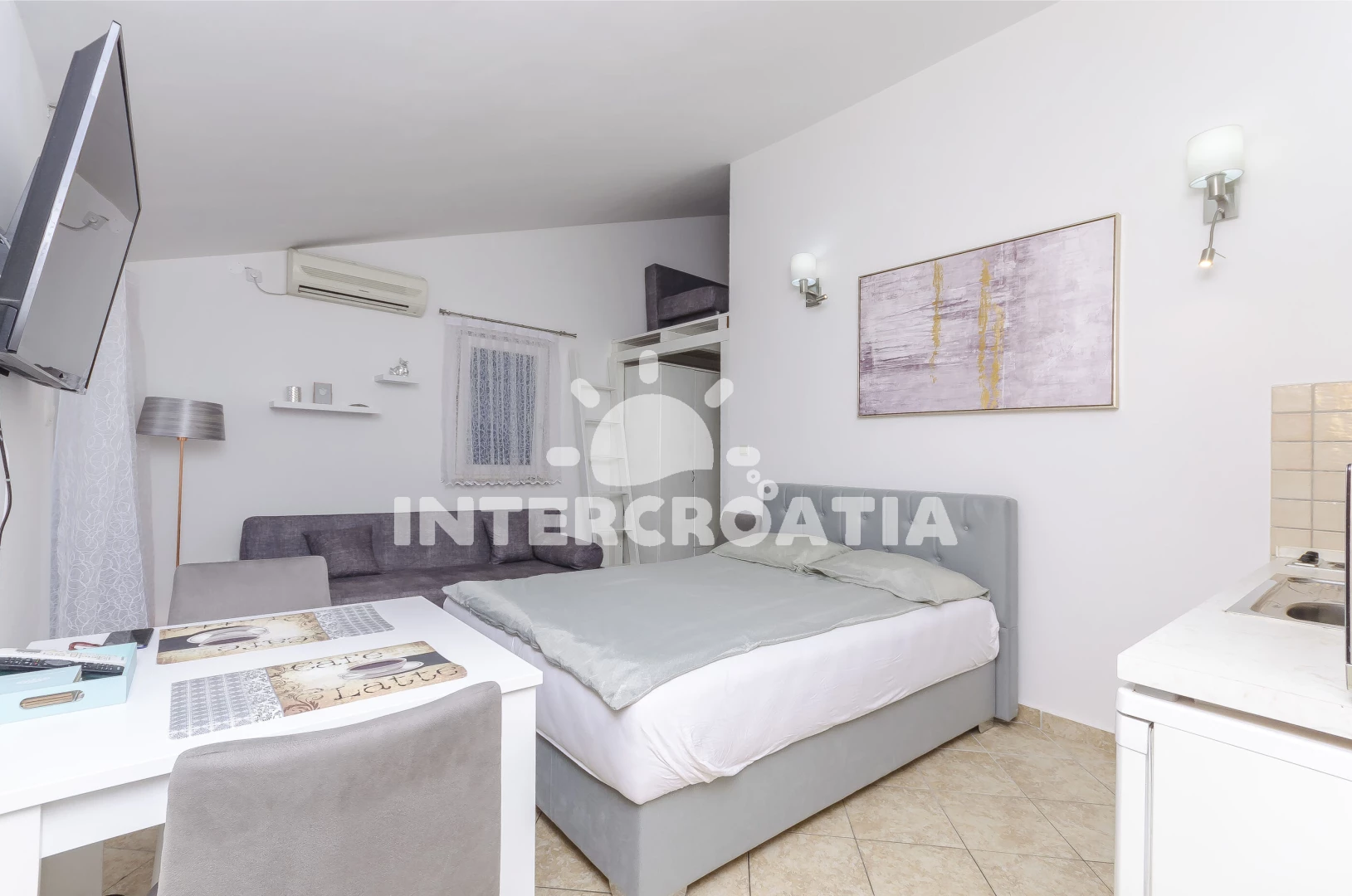 Vzdálenosti: Moře 270 m, pláž 340 m (oblázková a betonové desky), supermarket 100 m, bar 350 m, restaurace 500 m, centrum 700 m, lékárna 2 km, ambulance 2 km, park Plitvice 25 km, letiště (Zadar) 65 km,