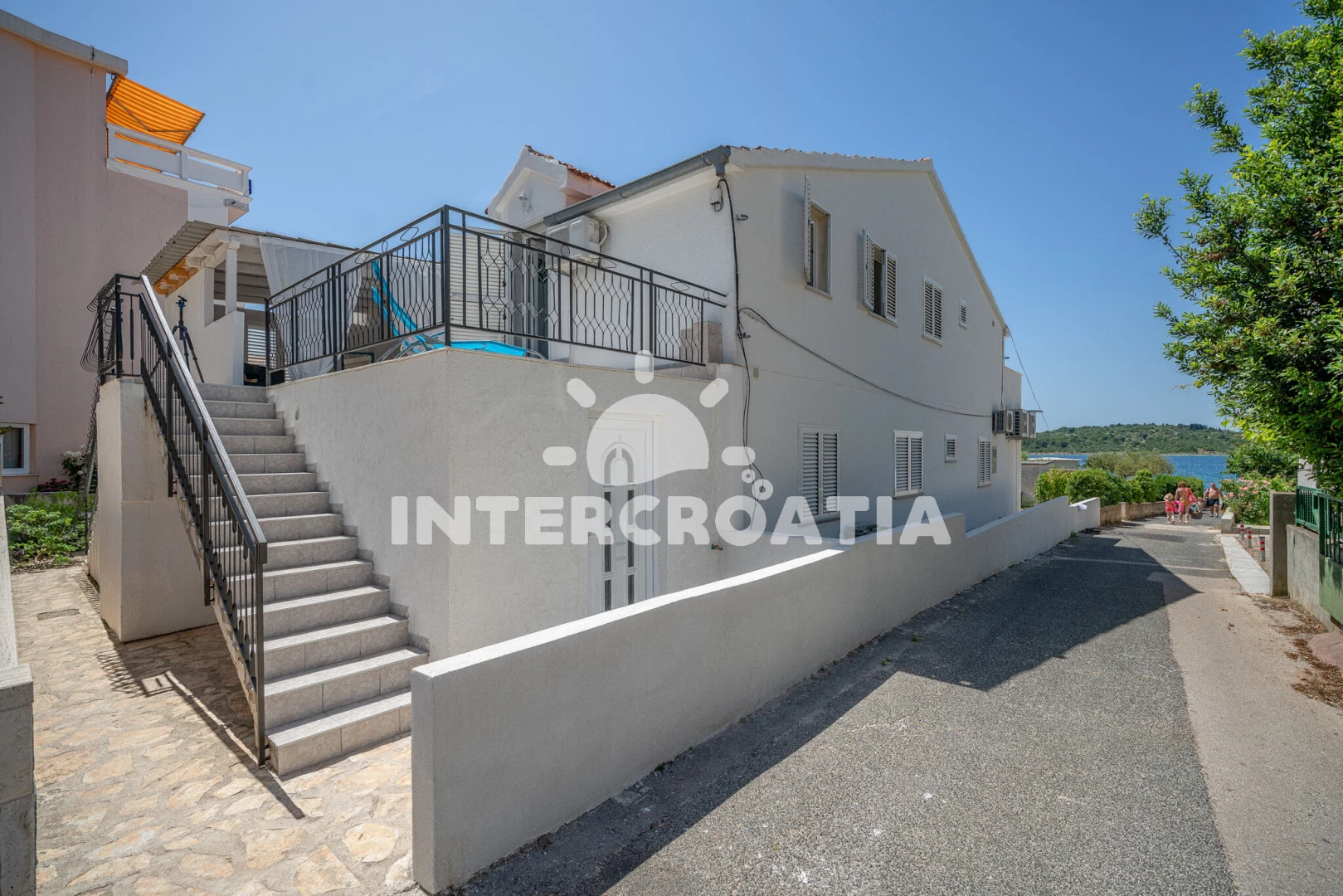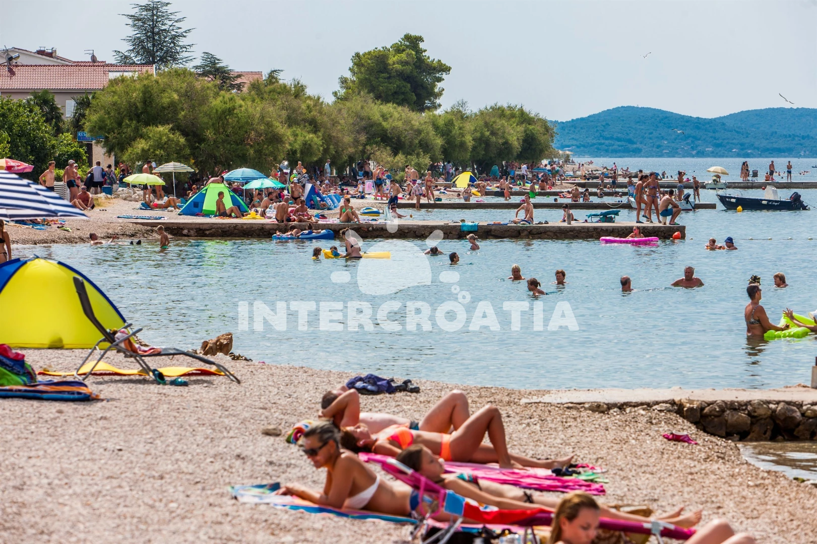 Vzdálenosti: Moře 60 m, pláž 60 m (oblázková a betonové desky), restaurace 240 m, bar 240 m, supermarket 400 m, veřejná doprava 600 m, centrum 800 m, půjčovna motorových člunů 1 km, směnárna 1 km, lékárna 1,6 km, ambulance 1,6 km, čerpací stanice 1,6 km, marina 1,7 km, diskotéka 1,7 km, banka 1,7 km, park Plitvice 23 km, letiště (Zadar) 60 km, trajekt (Zadar) 70 km,