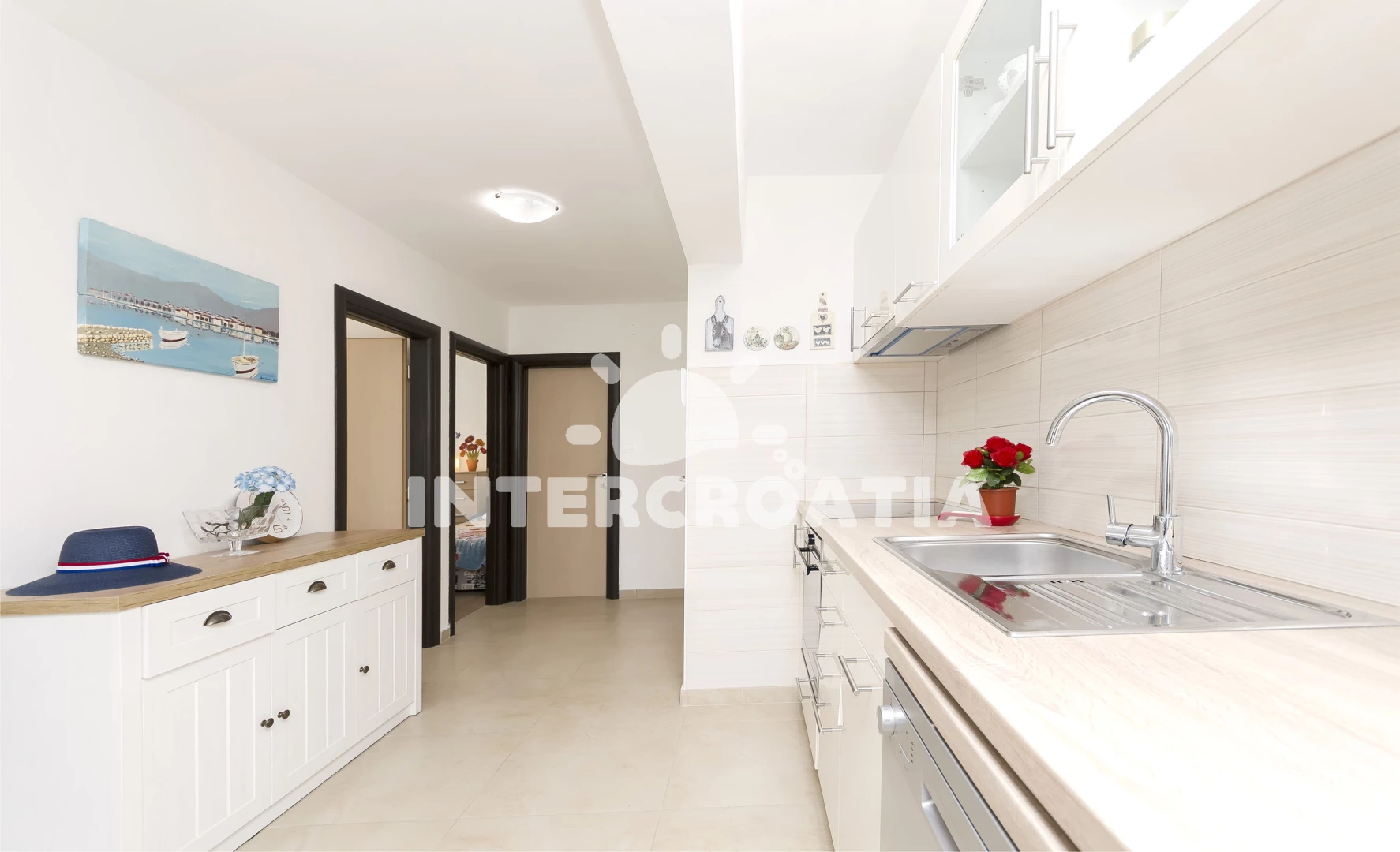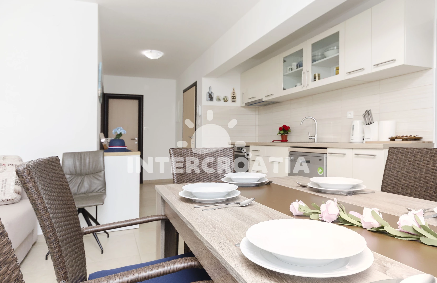 Vzdálenosti: Moře 300 m, pláž 300 m (oblázková a betonové desky), restaurace 400 m, bar 400 m, centrum 500 m, supermarket 600 m, lékárna 1,7 km, ambulance 1,7 km, park Plitvice 25 km, letiště (Zadar) 65 km,