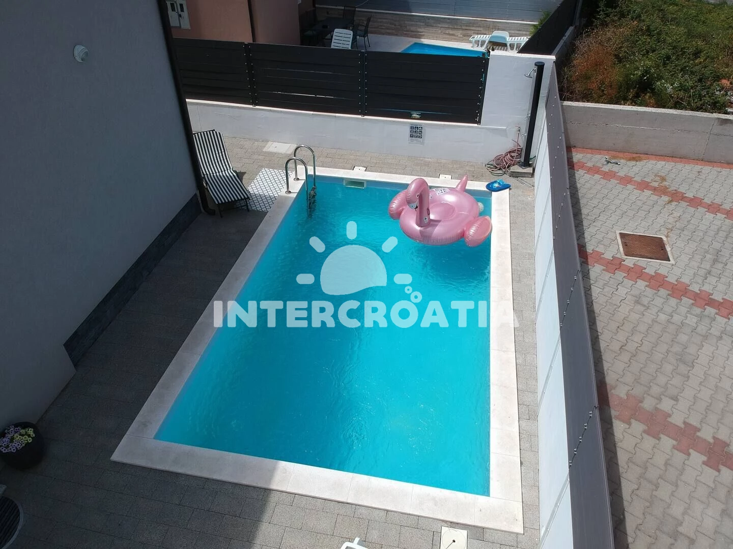 Apartmán se nachází 70 m od moře a pláže. Pláž je kamenné a betonové desky. Apartmán disponuje bazénem s lehátky pro ubytované hosty. U objektu je k dispozici společná zahrada s posezením a grilem. Parkování je před domem.