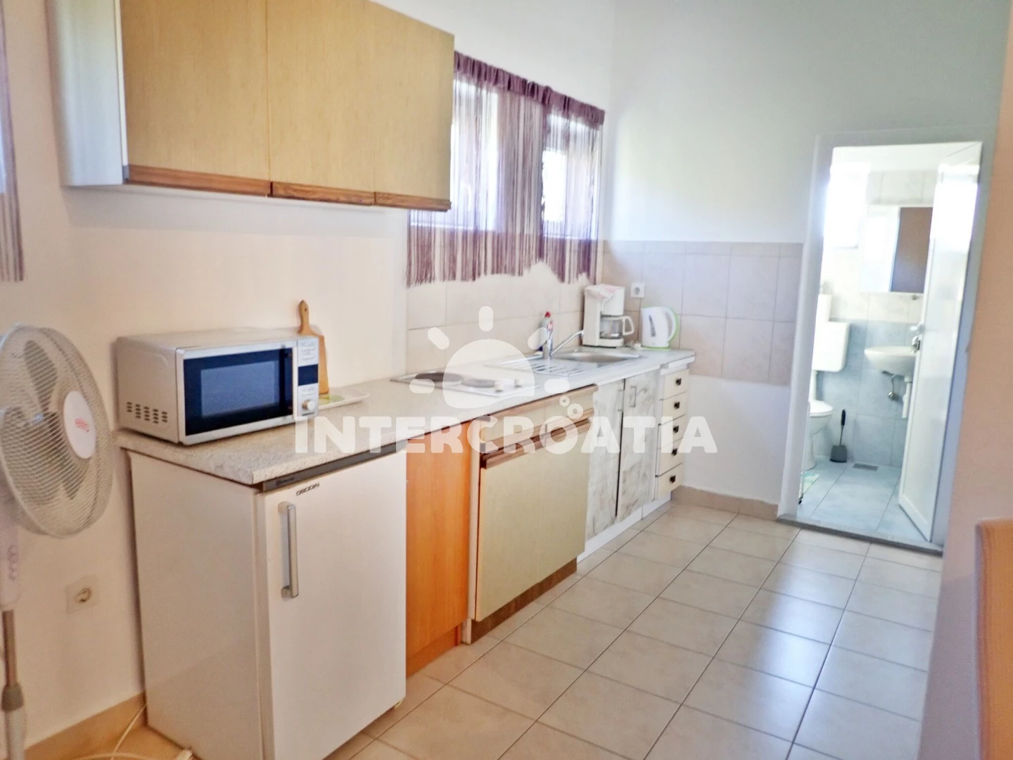 Vzdálenosti: Moře 50 m, pláž 50 m (betonové desky), supermarket 30 m, restaurace 30 m, bar 30 m, veřejná doprava 50 m, centrum 50 m, půjčovna motorových člunů 50 m, pošta 800 m, banka 1 km, ambulance 1 km, směnárna 1 km, čerpací stanice 1,5 km, půjčovna kol 1,5 km, lékárna 1,5 km, park Plitvice 2,5 km, tenisové kurty 2,5 km, letiště (Zadar) 40 km, potápění 45 km, muzeum 45 km, trajekt (Zadar) 45 km,