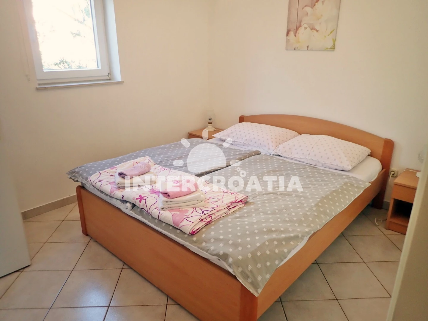 Apartmán (35 m2) s balkonem a venkovním posezením se nachází v 1. patře domu. Apartmán má 1 ložnici a je vhodný pro 2 až 3 osoby. Obývací pokoj je spojený s kuchyní. Kuchyňská linka je vybavena sporákem s troubou, digestoří, rychlovarnou konvicí, kávovarem, nádobím a lednicí s mrazákem. Obývací pokoj s jídelním stolem, pohovkou (rozložitelná na extra lůžko pro 1 osobu), televizí se satelitním programem, klimatizací a vstupem na balkon. Ložnice s jedním dvoulůžkem. Koupelna se sprchovým koutem, umyvadlem a wc. Hostům je k dispozici parkování u objektu zdarma.