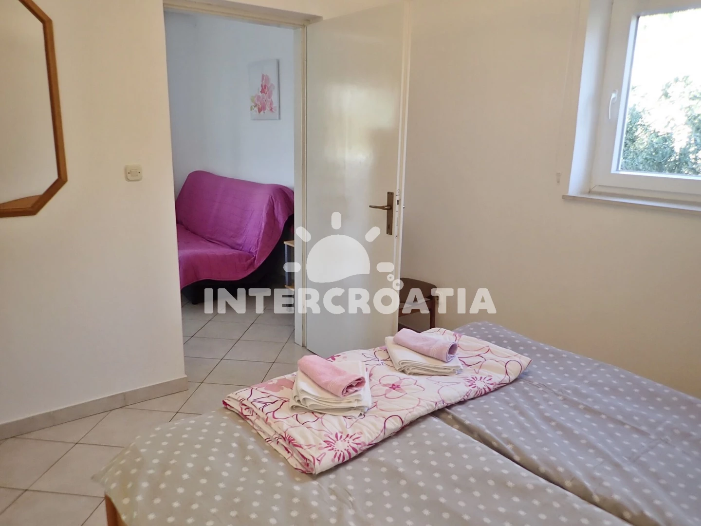 Apartmánový dům se zahradou je v docházkové vzdálenosti od pláže a moře. Pláž s betonovými moly a oblázkovým vstupem do moře je 200 m, oblázkovo-písčitá pláž je 6 minut pěší chůzí. Dům nabízí ubytování v klimatizovaných apartmánech s lodžiemi a venkovním posezením. Parkovací místa pro automobily jsou u domu.