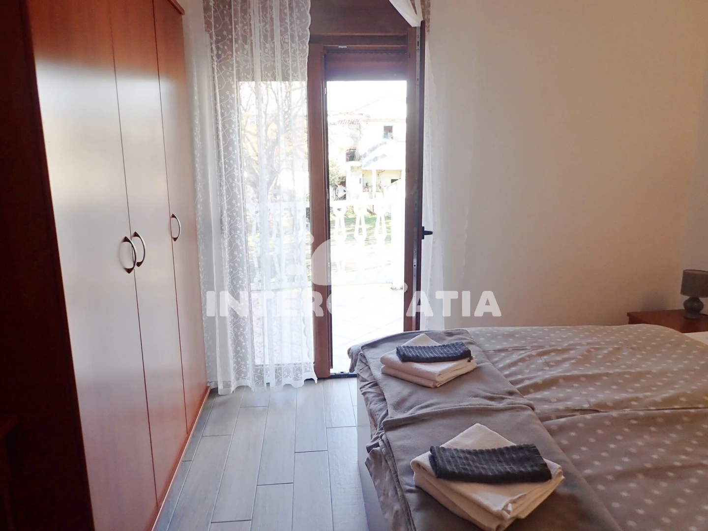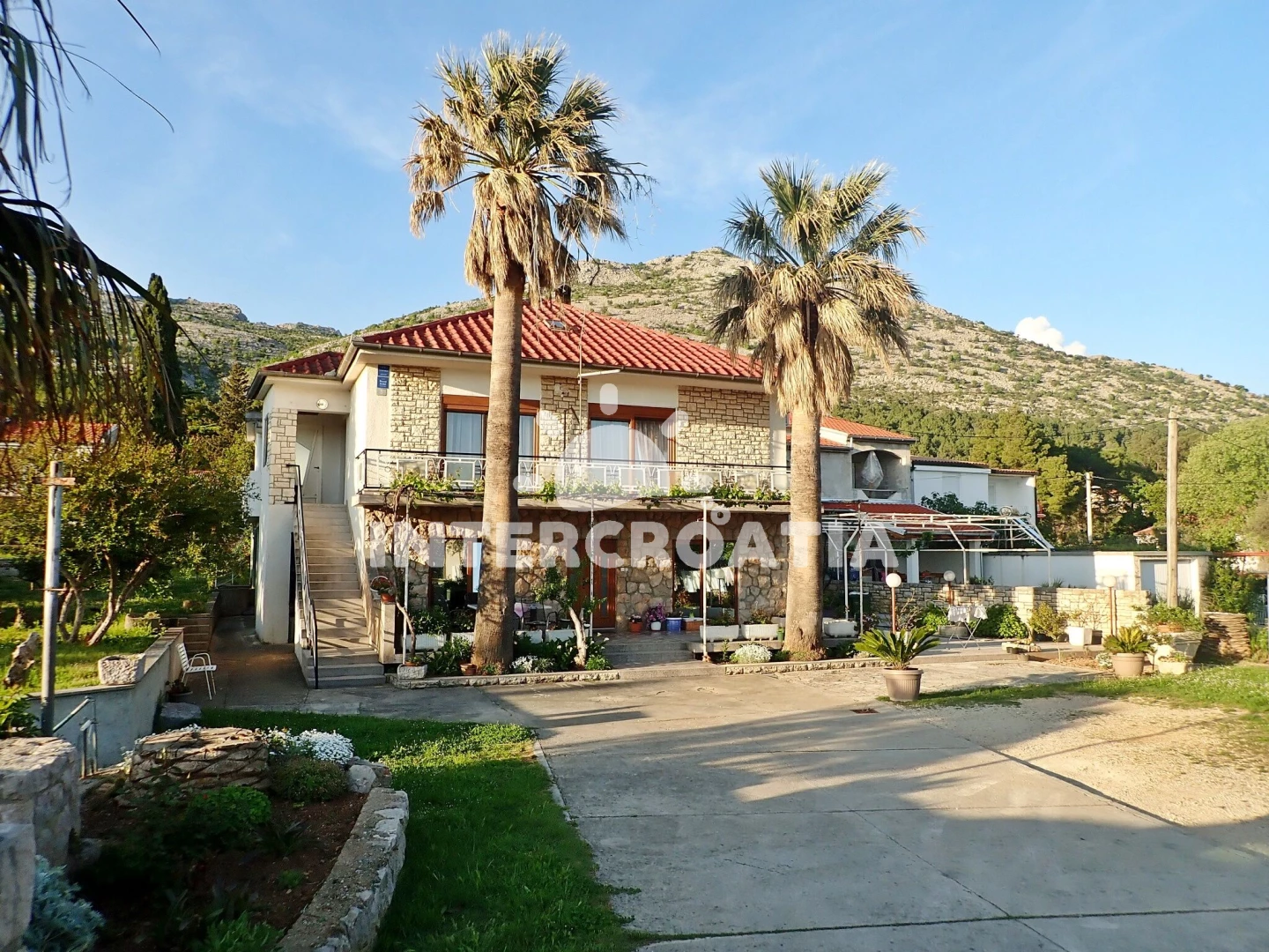 Apartmánový dům se zahradou je v docházkové vzdálenosti od pláže a moře. Pláž s betonovými moly a oblázkovým vstupem do moře je 200 m, oblázkovo-písčitá pláž je 6 minut pěší chůzí. Dům nabízí ubytování v klimatizovaných apartmánech s lodžiemi a venkovním posezením. Parkovací místa pro automobily jsou u domu.