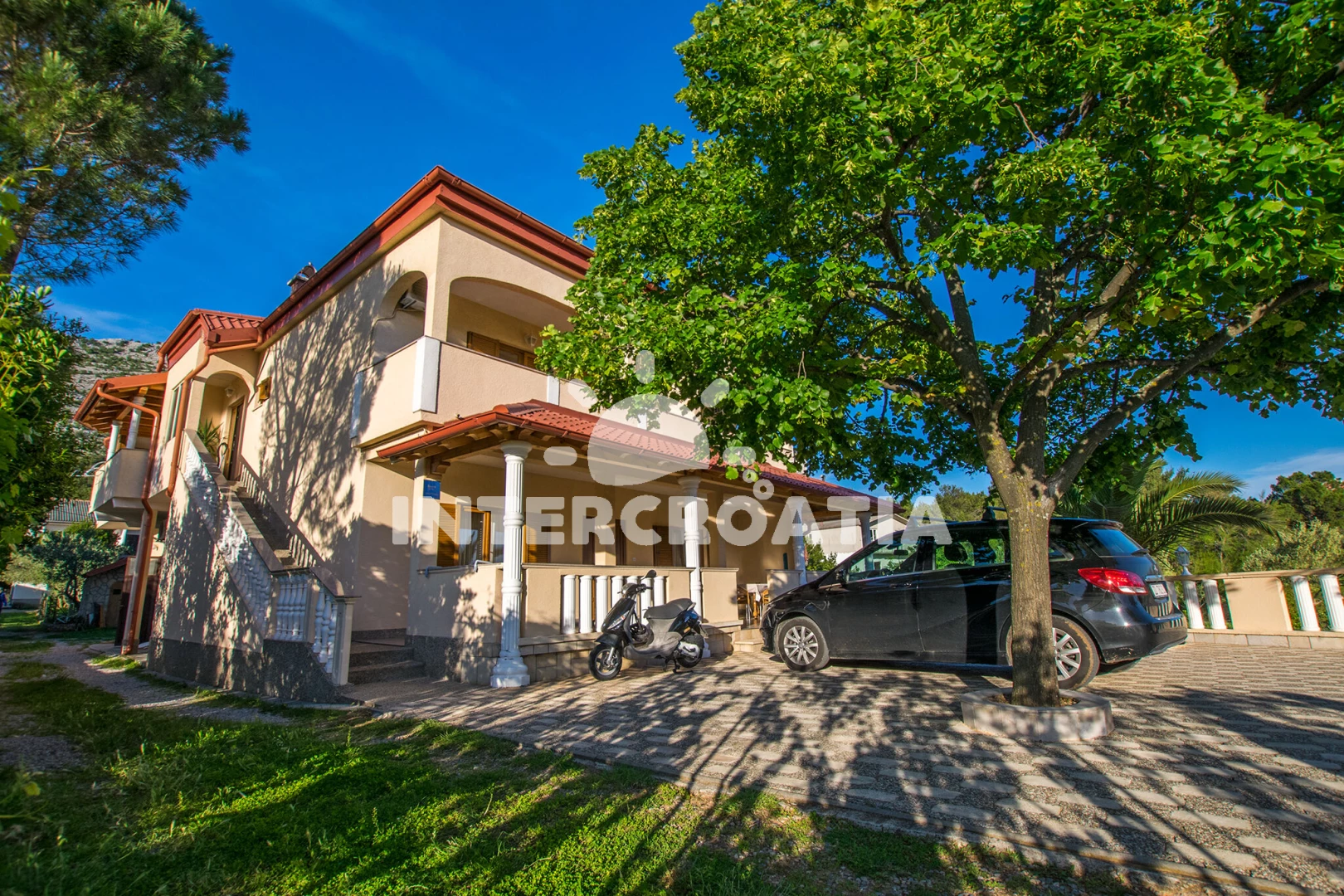 Velmi dobře umístěný apartmánový dům se nachází 220 m pěší chůzí od oblázkové-betonové pláže. Dům nabízí ubytování v klimatizovaných apartmánech s lodžiemi a venkovním posezením. U domu je k dispozici zahrada, terasa s posezením a zděným grilem. Přímo u domu je dvůr s parkovacími místy pro automobily.