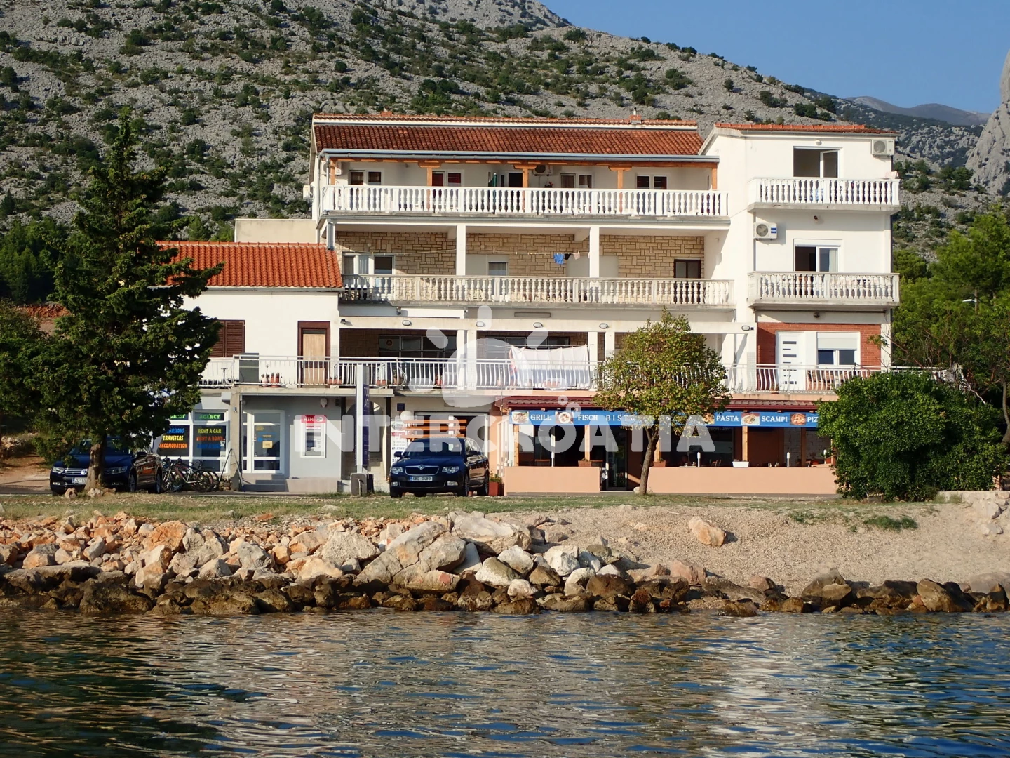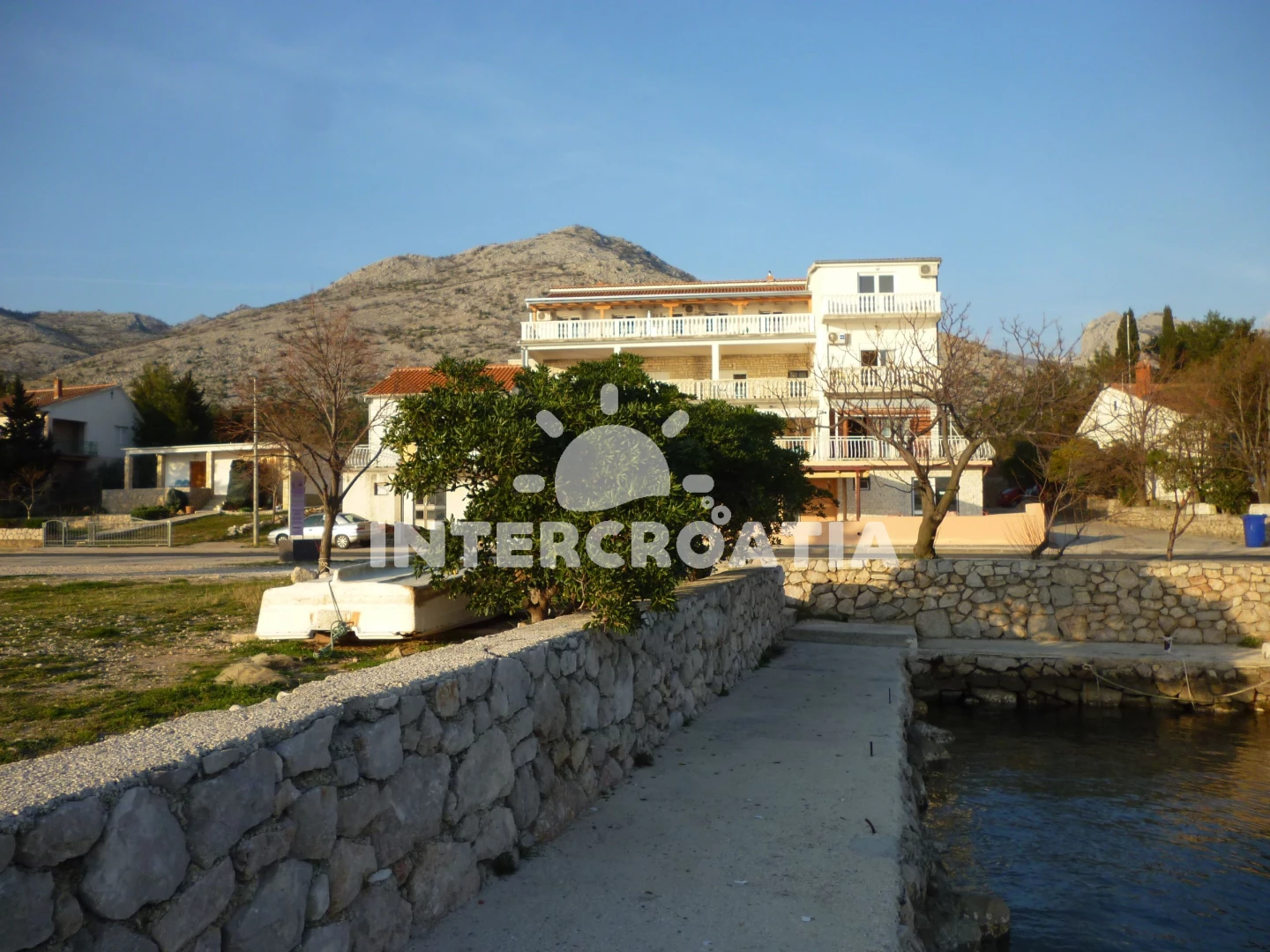 Vzdálenosti: Moře 30 m, pláž 30 m (skalnatá a větší kamení), restaurace 20 m, bar 20 m, kotviště pro čluny 30 m, pošta 200 m, směnárna 200 m, banka 200 m, ambulance 500 m, centrum 500 m, půjčovna motorových člunů 500 m, marina 500 m, supermarket 600 m, čerpací stanice 650 m, veřejná doprava 700 m, lékárna 700 m, park Plitvice 1,5 km, tenisové kurty 3 km, letiště (Zadar) 40 km, potápění 45 km, muzeum 45 km, trajekt (Zadar) 45 km,