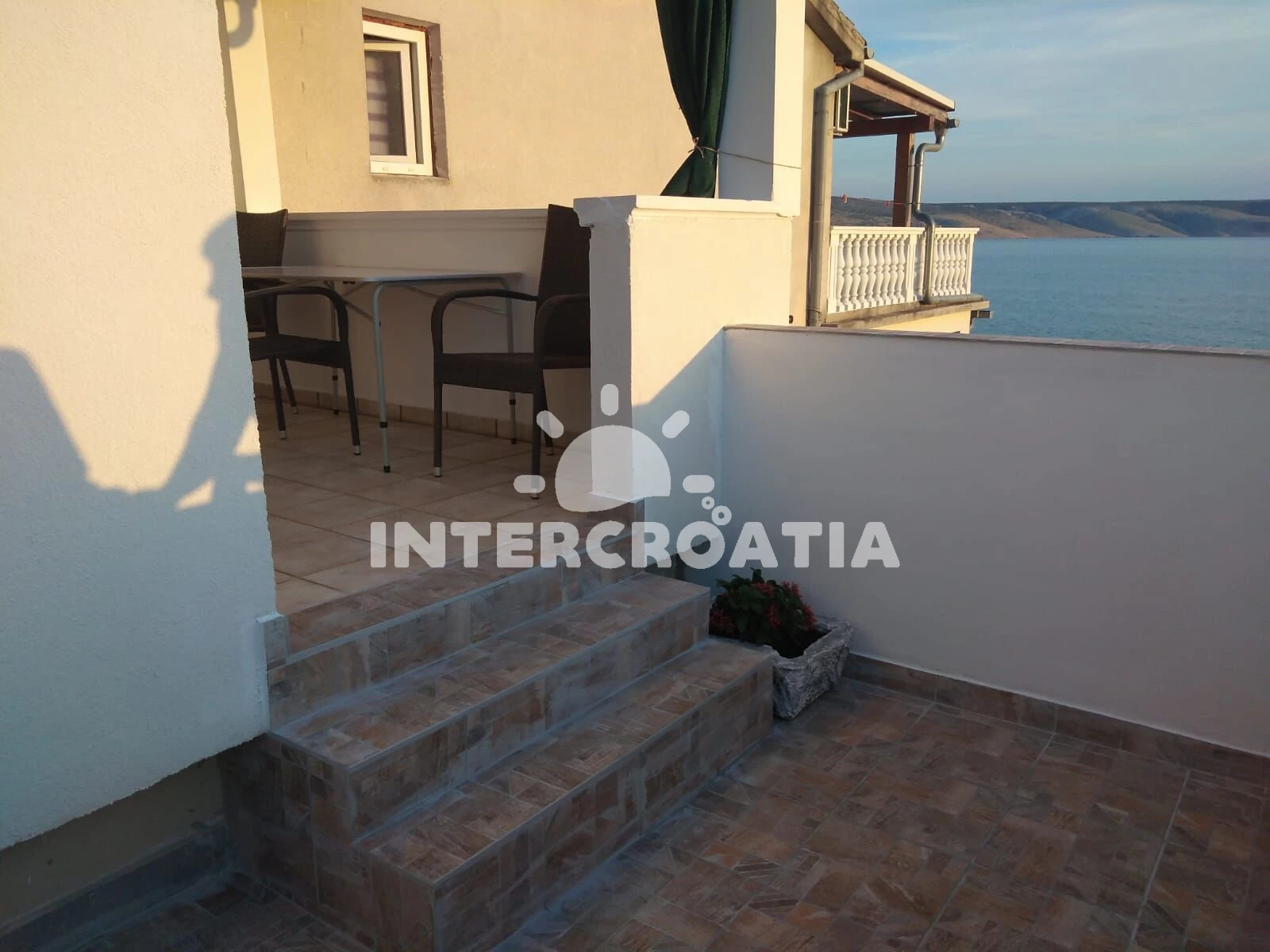 Apartmán se nachází 30 m od moře a pláže. Pláž je skalnatá a větší kamení. U objektu je k dispozici společná zahrada s posezením a grilem. Parkování je před domem.