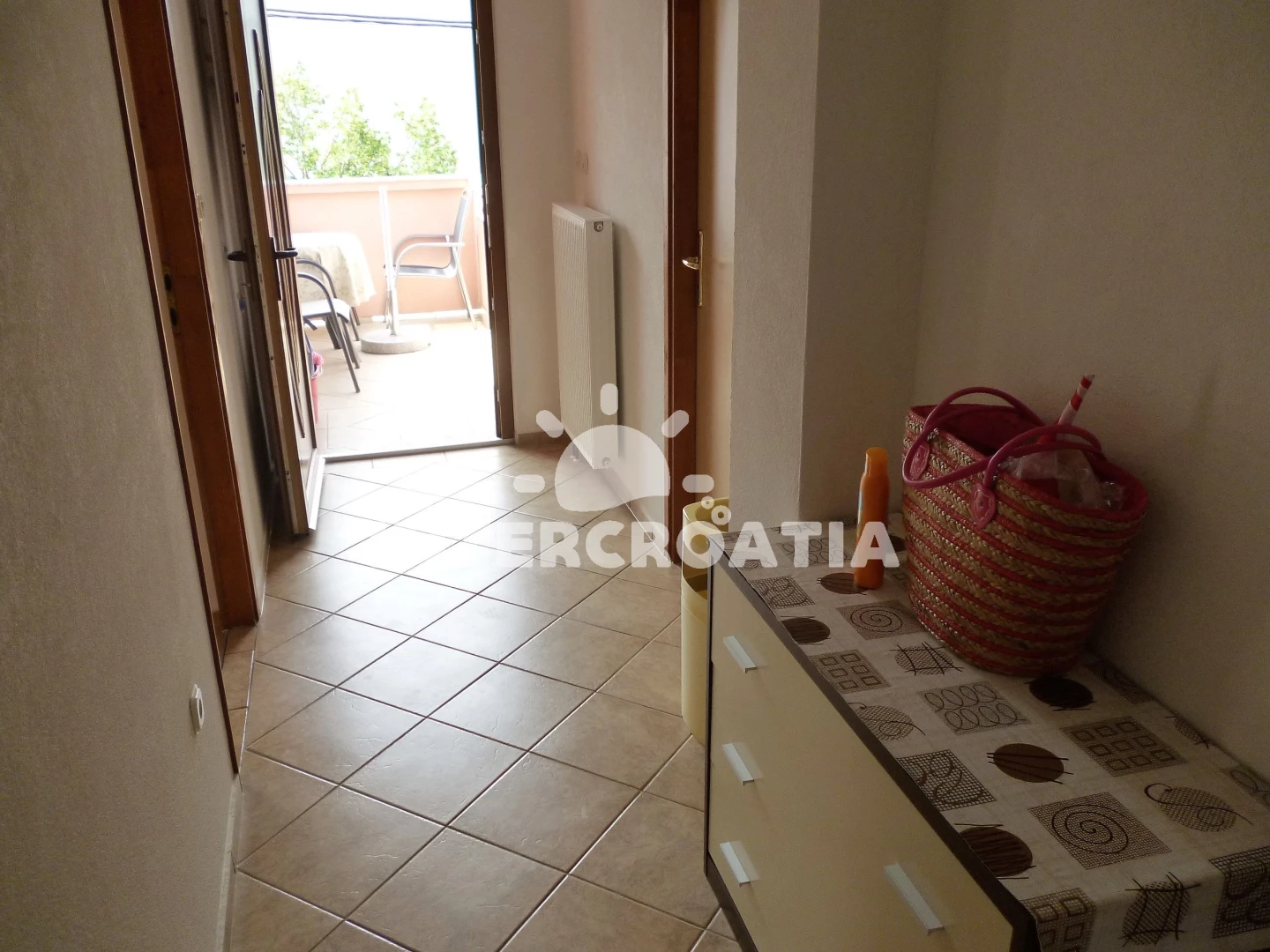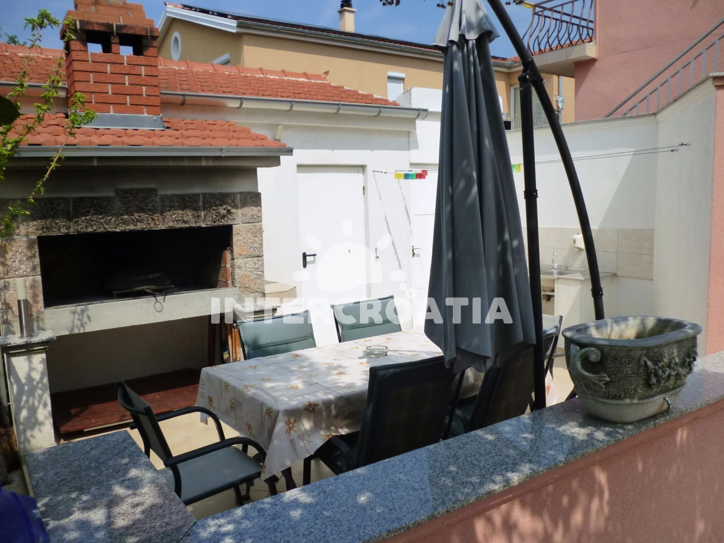 Apartmán se nachází 350 m od moře a pláže. Pláž je skalnatá a oblázková. U objektu je k dispozici společná zahrada s posezením a grilem. Parkování je před domem.