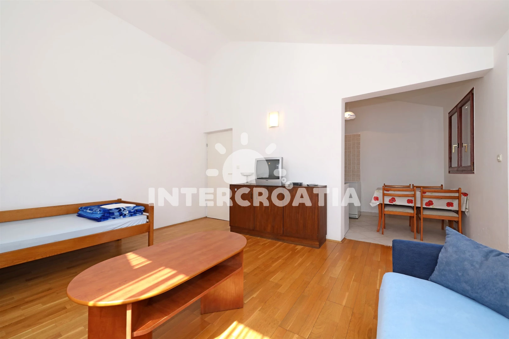 Vzdálenosti: Moře 150 m, pláž 200 m (oblázková a betonové desky), ambulance 200 m, směnárna 200 m, supermarket 200 m, restaurace 300 m, banka 300 m, pošta 300 m, bar 300 m, čerpací stanice 300 m, veřejná doprava 300 m, centrum 500 m, tenisové kurty 500 m, lékárna 500 m, letiště (Zadar) 45 km, trajekt (Zadar) 45 km,
