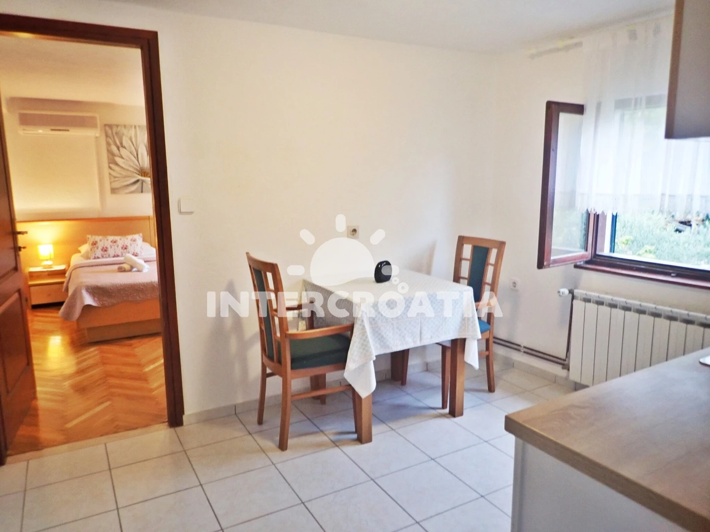 Apartmán se nachází 200 m od moře a pláže. Pláž je oblázková a betonové desky. U objektu je k dispozici společná zahrada s posezením a grilem. Parkování je před domem.