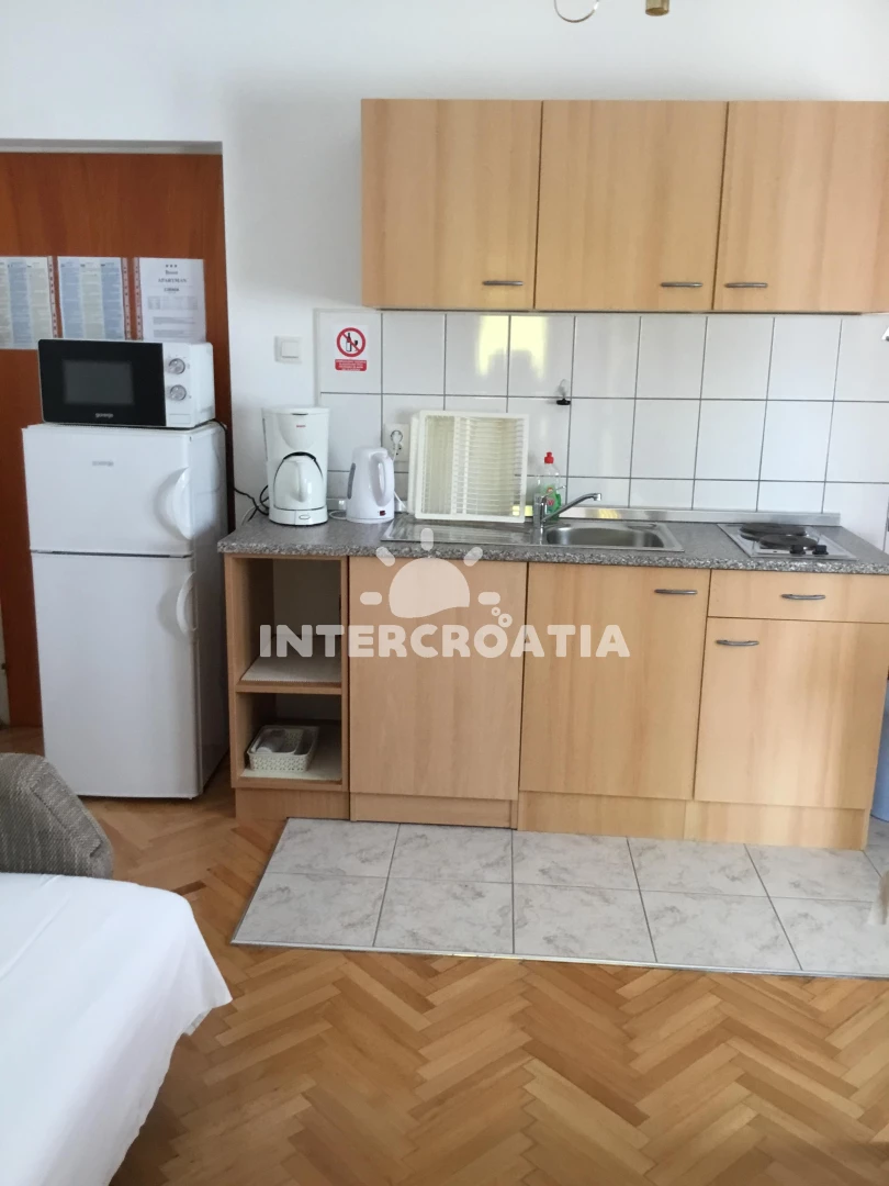 Vzdálenosti: Moře 250 m, pláž 250 m (oblázky), centrum 250 m, supermarket 250 m, veřejná doprava 250 m, restaurace 250 m, kotviště pro čluny 300 m, pošta 300 m, půjčovna kol 400 m, banka 400 m, půjčovna motorových člunů 400 m, směnárna 400 m, ambulance 400 m, lékárna 400 m, čerpací stanice 500 m, tenisové kurty 500 m, muzeum 40 km, diskotéka 40 km, letiště (Zadar) 40 km, trajekt (Zadar) 45 km,