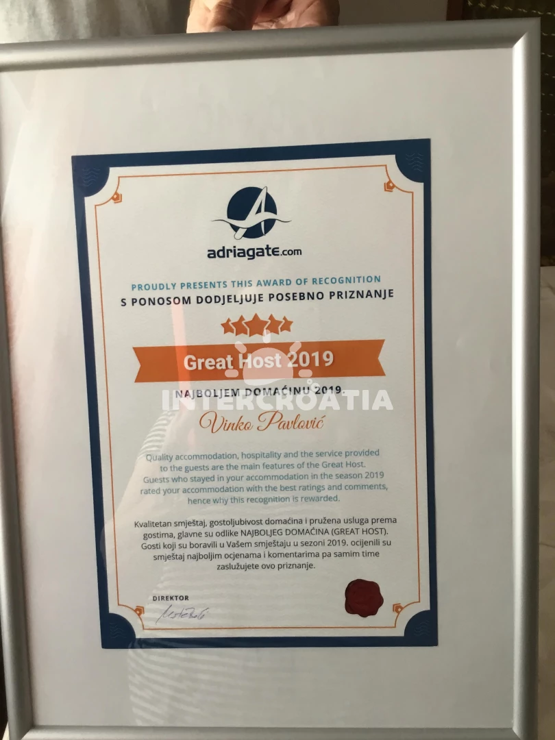 Domácí zvířata nejsou povolena. V ceně pobytu zahrnuto: WiFi, klimatizace (část místností), povlečení, ručníky, pračka, závěrečný úklid, pobytová taxa. Pronajímatel se dorozumí chorvatsky, anglicky, německy, Pronajímatel vás bude očekávat po 14:00. V den odjezdu je nutné vyklidit apartmán do 10:00.